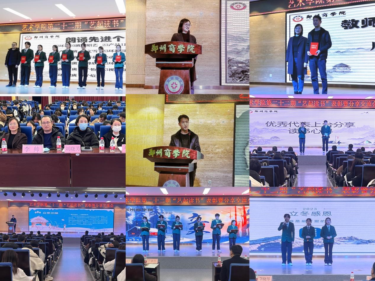 为落实学校书香校园阅读经典工程建设的要求,不断形成“三全育人”的良好格局,实现学生“知识、能力、人格”的协调发展,艺术学院于12月6日晚在自力楼三楼报告厅开展2023年书香校园阅读经典工程启动仪式暨第二十二期“艺起读书”表彰暨分享交流会。图书馆馆长李晓琴、艺术学院党委书记李帅、团委书记殷晴波、全体辅导员和学生代表参与了本次活动。本次活动开阔学生的视野,丰富学生的精神世界,提高同学们的专业素养和人文素养,收获与感恩,营造了良好的书香氛围,凸显点点官网育人成效,培育和践行社会主义核心价值观,让学生了解立冬传统知识,感知中华文化的悠久历史,同时让大家感受爱、学会爱,学会识恩、知恩,从而善于施恩,并增强学生把感恩之情,化为学习中自强不息、顽强拼搏的励志精神。