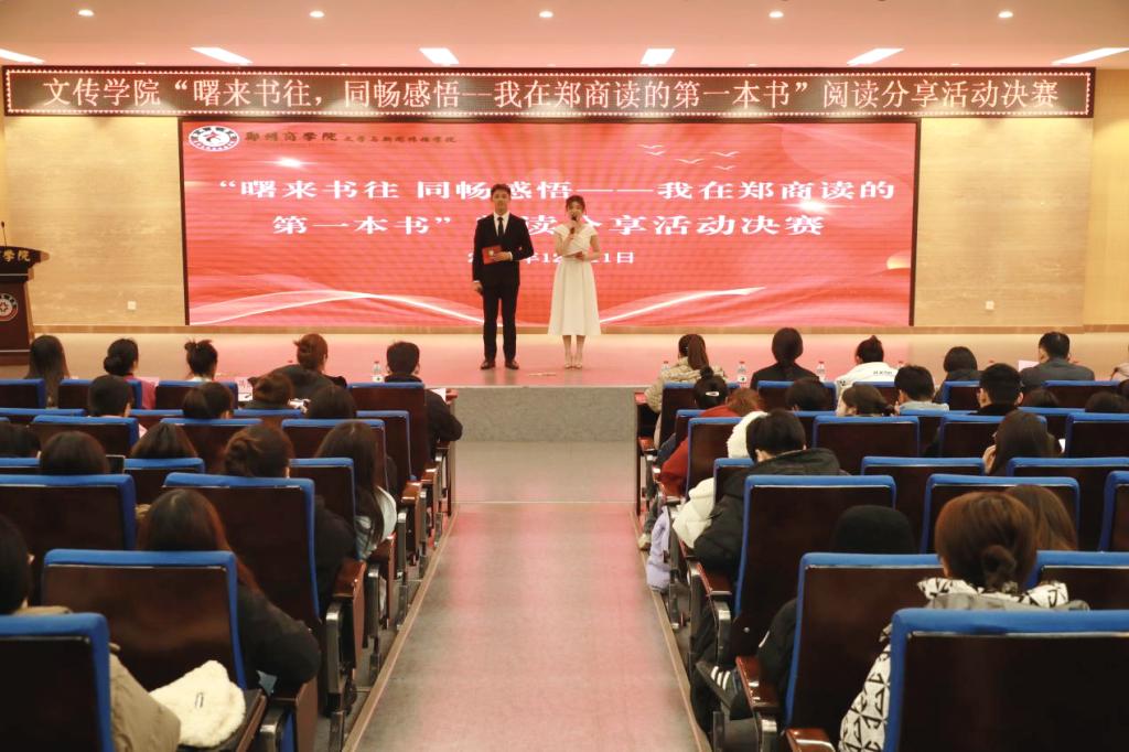为不断丰富我院阅读活动的形式与内涵,充分发挥班级阅读榜样的带动作用,激发23级学生的阅读热情,12月11日18时,文传学院在自力楼三楼报告厅举行了“曙来书往,同畅感悟——我在郑商读的第一本书”活动决赛。党委书记贾蓓、图书馆朱少飞科长、团委书记王凯、文学教研室冯凯云老师及辅导员老师代表和学生代表参与了本次活动。活动最后,朱少飞科长对本次参赛选手的精彩表现予以称赞,并希望同学们都能积极阅读。此次活动有助我院学子在书中感悟真谛,不断探寻人生奥秘。