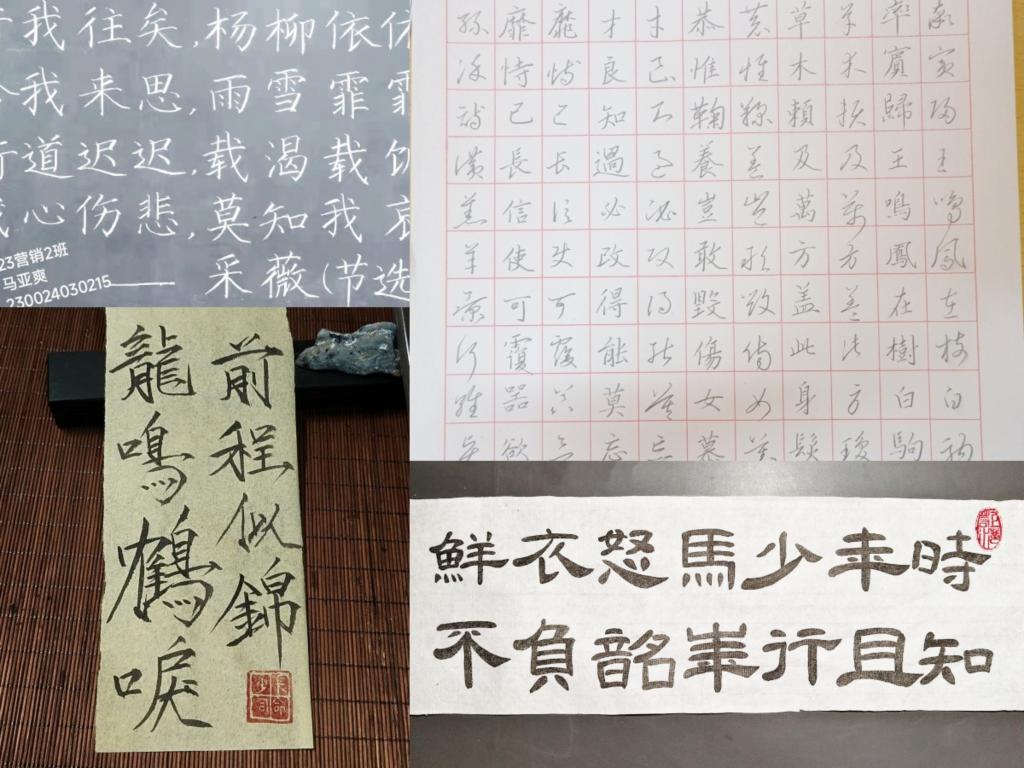 “以字树人、以字启智、以字修身、以字立德”。为落实书香校园阅读经典工程建设,发挥校园文化育人能力,全面推进素质教育,培养大学生的创新精神,实践能力、审美修养和人文素养。5月9日,我院举办“笔墨飘香,书韵三笔”书法比赛,于线上进行初赛。初赛阶段,共收集硬笔参赛作品181个,粉笔作品17个,毛笔作品13个。