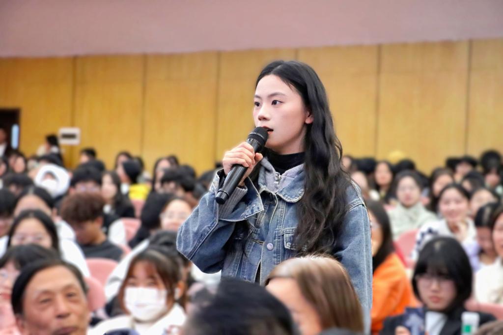 令人动容的是,肖洒老师引领全场师生,同诵习近平总书记的《念奴娇·追思焦裕禄》以结束讲座。全场群情激昂,声音洪亮,同学们不仅感受到了习近平总书记词作中的大气与深情,更体验了一场震撼心灵的听觉盛宴。这一刻,经典不再是书本上的文字,而是化作了每个人心中激荡的情感,连接着过去与现在,传承着中华文化的精神血脉。