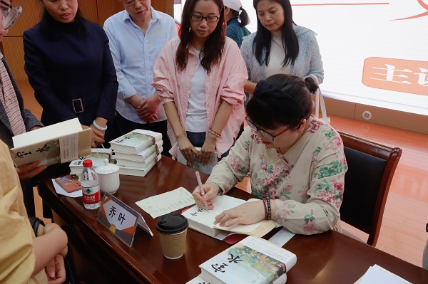 乔叶老师真挚淳朴的讲解风格深受郑商学子的喜爱。随后,乔叶老师亲切回答了学生代表的现场提问,并为热心书友签名、合影留念。