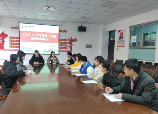 张院长首先对新聘教师表示热烈欢迎,接下来从学院概况、师资队伍现状、教学督导检查、课堂教学注意事项四个部分对新聘教师展开了培训。张院长强调思政课教师要始终把立德树人、铸魂育人放在首位,落到实处,思政课教师使命光荣,责任重大,新聘教师要尽快做好角色的转换,熟知学校的规章制度,同时勉励新聘教师要努力站稳讲台,上好开学第一课,逐步提升教学质量。