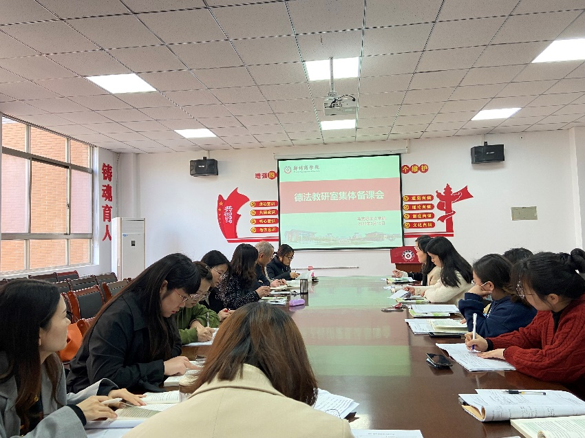 为了提升德法课教学质量和教师教学水平,帮助青年教师解决备课、上课中遇到的问题,德法教研室于3月10日上午在我院会议室召开集体备课会,教研室主任杨丽丽主持本次会议,德法教研室全体教师参加。