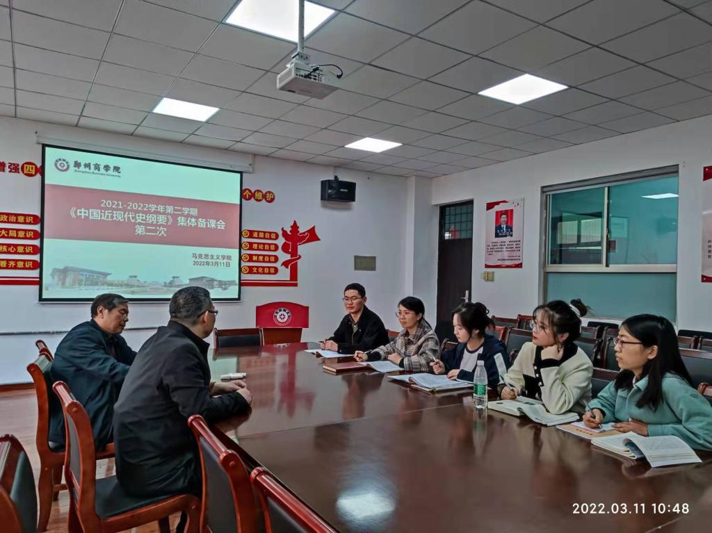 为提升教学质量,完善教学设计,促进教师成长,纲要教研室于2022年3月11日上午在我院会议室召开了集体备课会,本次会议由马信强老师主持,纲要教研室全体教师参加。