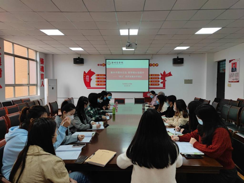 为进一步提高青年教师的职业素养和业务水平,使青年教师能够更快更好地站稳讲台,2022年3月30日上午,“德法”教研室在我院会议室召开集体评课会。张党诺院长与德法教研室全体教师共同参加,此次会议由德法教研室主任杨丽丽主持。