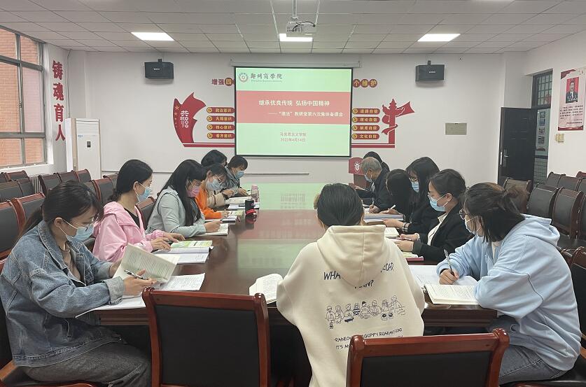 为了进一步提升德法课程教学质量,增强课堂教学实效性,4月14日下午,德法教研室在我院会议室开展了“继承优良传统 弘扬中国精神”集体备课会,活动由教研室主任杨丽丽主持,全体无课教师参加。