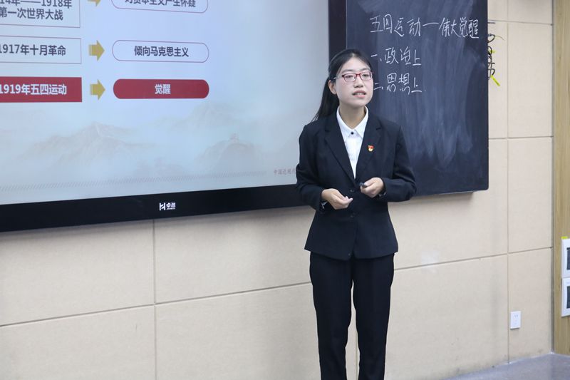 中国近现代史纲要教研室郭敏杰老师以习近平总书记的讲话导入引出五四运动是中国人民和中华民族的伟大觉醒,并结合案例对政治上的觉醒、思想上的觉醒和组织上的觉醒三个方面进行讲解,引发学生思考。