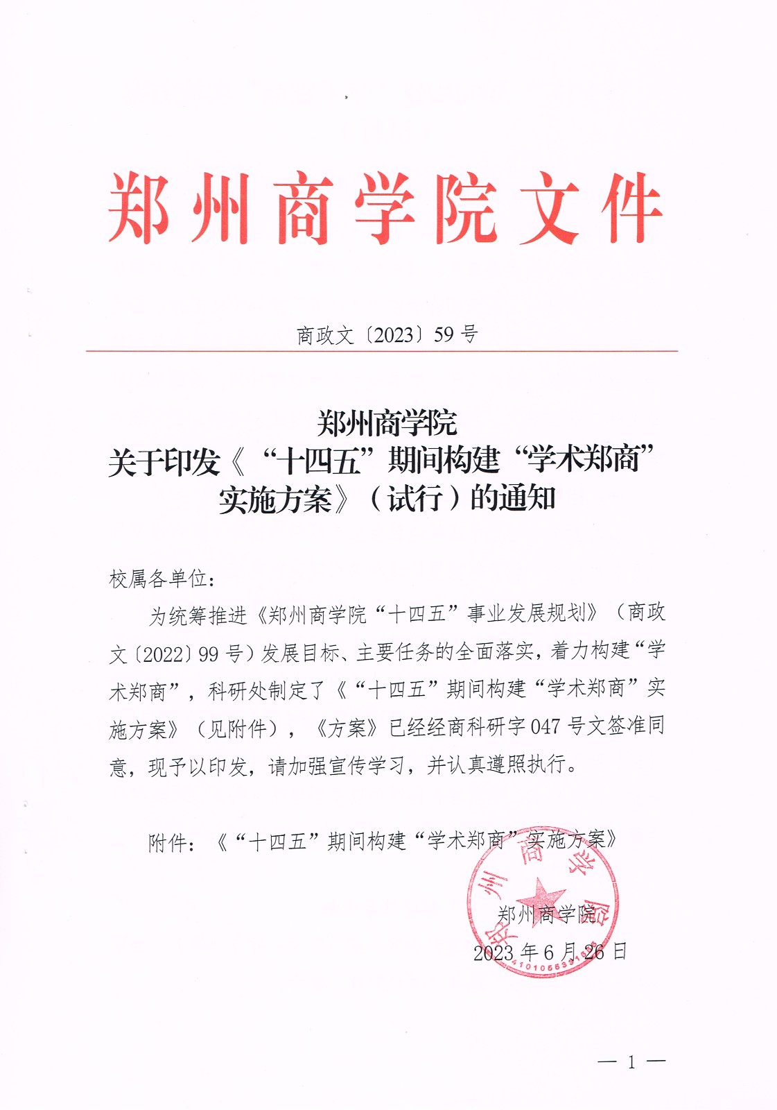 关于印发《“十四五”期间构建“学术郑商”实施方案》(试行)的通知