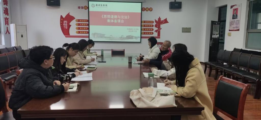 为进一步提升教师的教学能力及水平,突破教学重难点,充分发挥教师的集体智慧,11月21日上午,“德法”教研室组织召开了第三章“继承优良传统 弘扬中国精神”的集体备课会。本次会议由教研室主任杨丽丽主持,教研室全体会上,李会钦老师对“做新时代的忠诚爱国者”这一内容进行了教学方面的思路指导。随后,杨主任带领教研室全体教师对第三章第二节这一部分内容进行了研讨。