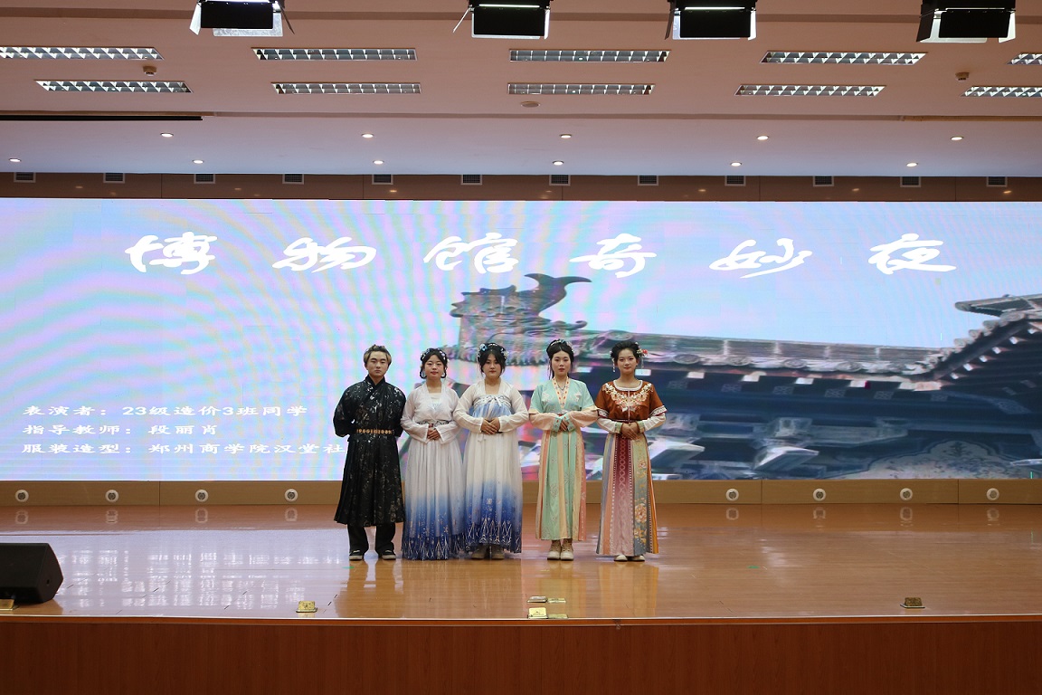 师生通过歌舞剧、情景剧、诗歌朗诵等多种方式将各课程实践教学活动成果进行汇报:诗歌朗诵《大河——献给黄河》,通过“读懂黄河篇”、“歌颂黄河篇”、“时代交响篇”,以嘹亮的红声,描绘出磅礴澎湃的黄河本体、伟大坚强的黄河精神、激荡雄浑的新时代交响,让青年学生再一次感受到了黄河的力量;情景剧《三寸粉笔系深山,烛光千里耀云岭》以张桂梅校长这一时代楷模人物为主题演绎了她筹办女高的困难经历,展示了张校长始终牢记党的宗旨,秉持为民情怀,书写了人民教师的高尚师德和责任担当,帮助学生认知强国使命、奋发学习成长,在实现中华民族伟大复兴中国梦的新征程上奋勇前进;诗歌朗诵《“铁人”英雄,白衣侠骨》中时代楷模——张定宇院长身患渐冻症,却守在疫情最前沿,这种“功成不必在我,功成必定有我”的责任担当和精神境界,诠释了当代青年应当树立的人生价值,要积极为党和人民的伟大事业贡献力量;文物讲解《探索时光长河,品味千年文明》、情景剧《博物馆奇妙夜》用多样的形式赋予文物生命、让文物活起来,通过讲述文物背后的故事,见证河洛文化源远流长,引导青年学生积极做中华文明的传播者和弘扬者,坚定文化自信;诗歌朗诵《秉持天眼精神,赓续时代之光》颂扬“中国天眼”之父——南仁东用不朽的功绩在天文学领域挺起了一个民族的脊梁,引导学生向楷模致敬,更要向楷模学习,勇于挑起时代大旗,担当民族复兴的伟大使命;《历久弥新,留玉生香》采用诗歌朗诵和豫剧结合的形式展示了人民艺术家常香玉大师一生秉持“为祖国放歌、为人民演戏”的执着追求和崇高的爱国情怀,铸就了一座艺术和人格的不朽丰碑,为青年学生树立了学习的榜样;歌舞表演《灯火里的中国》展示了竹林镇在党的领导下实现了华丽蝶变,诠释了“爱竹林、比贡献、谋发展、勇创业、讲文明”的竹林精神,鼓舞学生不断用红色文化和革命精神淬炼意志、砥砺初心,牢固树立共产主义远大理想。