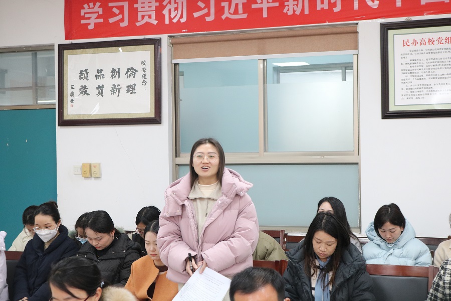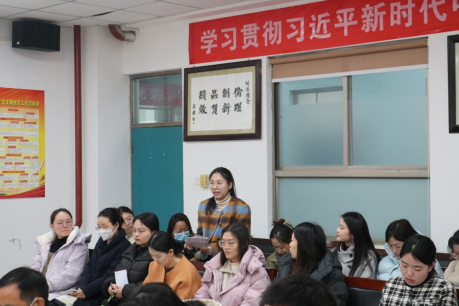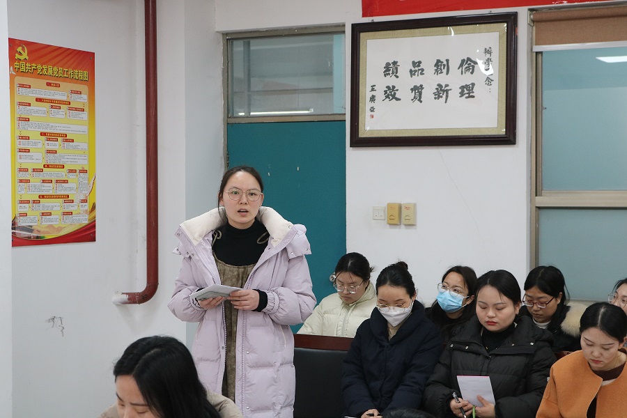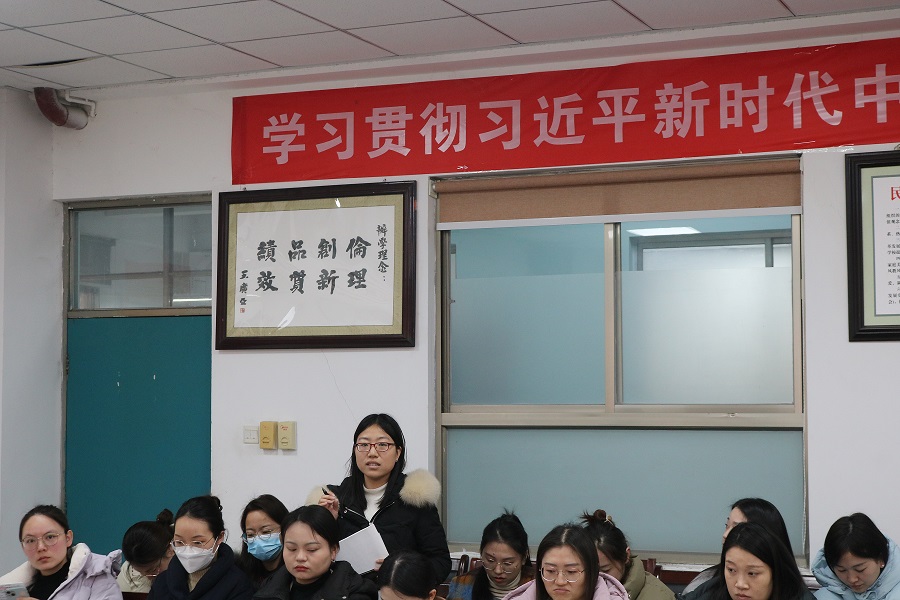 会上,江琳琳老师首先领学《党史学习教育工作条例》及“巩固拓展主题教育成果,习近平总书记提出5点重要要求”的相关内容。随后,各支部党员代表逐一分享自己的学习感悟。焦珍珍老师表示,应把党史学习教育作为“必修课”,从中汲取智慧和力量,在日常教学中学好党史、用好党史;常小徽老师认为,作为一名思政教师更应该做到用丰富有趣的史实资料结合理论知识,提高思政课的吸引力;郭敏杰老师表示,我们要深入学习、细心品读、用心感悟,实现党史学习教育与教书育人的有机结合;张雁航老师表示,作为一名思政课教师,要把历史当作最好的教科书,把弘扬革命文化、传承红色基因融入思政课;杜尚远老师认为,作为一线思政课教师要,树立正确党史观,把学习成果转化为教育教学工作的强大动力。