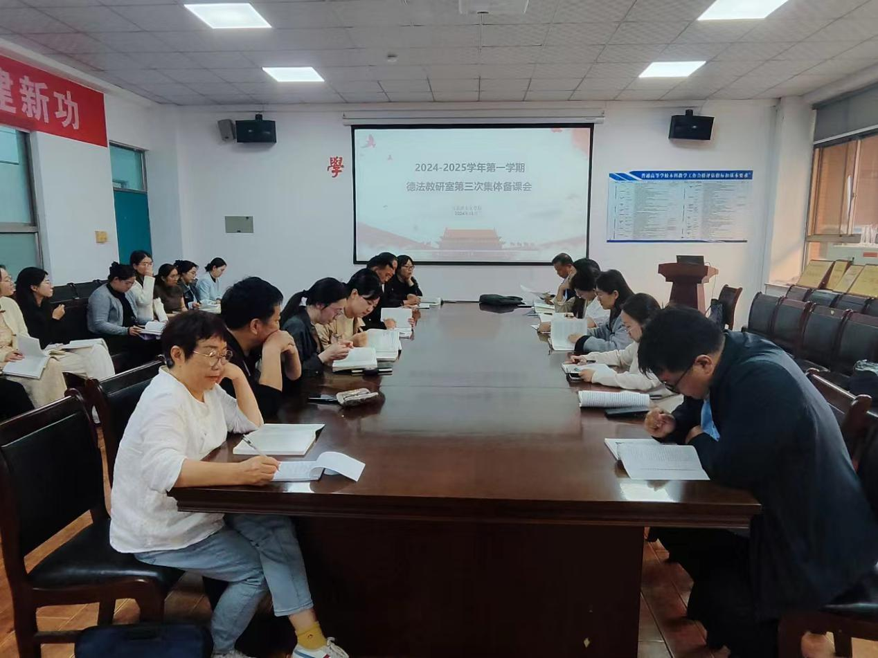 为进一步加强师资建设、持续提升教学质量,确保本学期课程的授课质量和教学效果,10月10日上午,德法教研室全体教师在一号楼会议室开展了第三次集体备课会,会议由教研室主任杨丽丽老师主持。