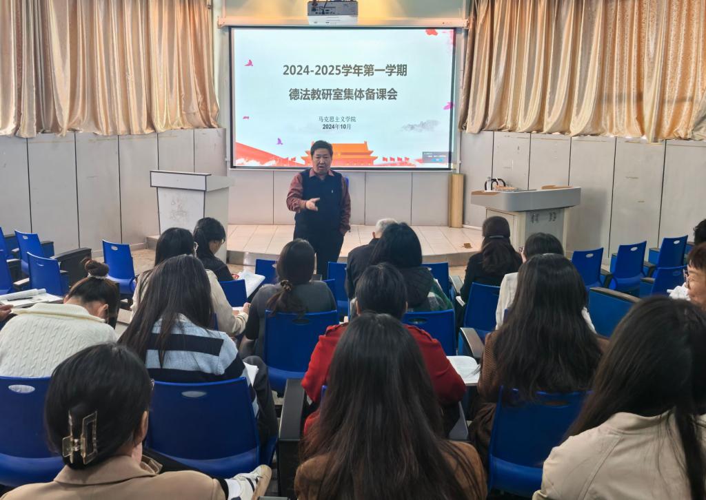 为进一步提升思政课教育教学质量和教师的政治素养,更好地落实立德树人根本任务,10月29日上午,德法教研室在1号楼开展了集体备课会。会议由教研室主任杨丽丽老师主持,教研室全体教师参加。
