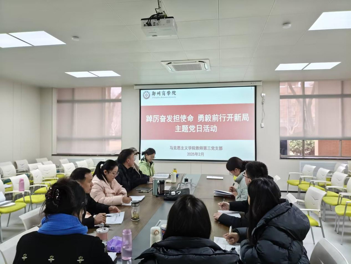 为进一步牢固树立纪律和规矩意识、贯彻落实新时代党的建设总要求,2月24日上午,马克思主义学院教师第三党支部在4号楼一楼会议室开展“踔厉奋发担使命 勇毅前行开新局”主题党日活动。