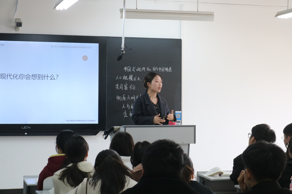 课上,王晓楠、陈继荣和姚丹霞老师分别围绕《习近平新时代中国特色社会主义思想概论》第二章“中国式现代化是强国建设、民族复兴的唯一正确道路”与第三章“中国最大的国情就是中国共产党的领导”的内容进行了详细讲述。王晓楠老师通过设置问题“提到现代化你会想到什么”引发学生讨论,并对学生的回答进行引导和补充,再逐步引入到“中国式现代化”的内涵,并结合大量案例进行深入分析中国式现代化的中国特色,真正做到了重难点突出。陈继荣老师结合当前社会热点和青年学生的思想实际,将理论知识与实践案例相结合,并运用学习通与学生进行实时互动,深入浅出地阐述了中国式现代化的中国特色,整堂课程师生互动有序,课堂氛围融洽。姚丹霞老师从“西藏日喀则6.8级地震”与“洛杉矶山火”两场灾难救援的鲜明作对比,不仅凸显了中国共产党能够集中力量解决人民群众最关心最直接最现实的利益问题,更深刻反映出两种社会制度的本质区别,新颖的案例导入与课程内容衔接自然,讲授效果良好。