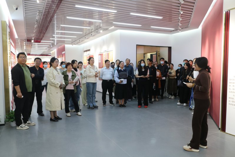 接下来,杨丽丽老师带领教师们走进我院的“真理之光”思政主题育人体验中心。杨丽丽老师从马克思主义的创立与发展、列宁主义的形成与发展、毛泽东思想的形成与发展、中国特色社会主义理论体系的形成与发展、习近平新时代中国特色社会主义思想五个部分详细讲解了马克思主义中国化时代化的历史进程。参观结束后,参会教师们积极分享自己在场馆思政课教学中的实践案例与心得体会。大家围绕如何提高场馆思政课的教学效果、如何设计多样化的教学活动等问题展开了热烈讨论。