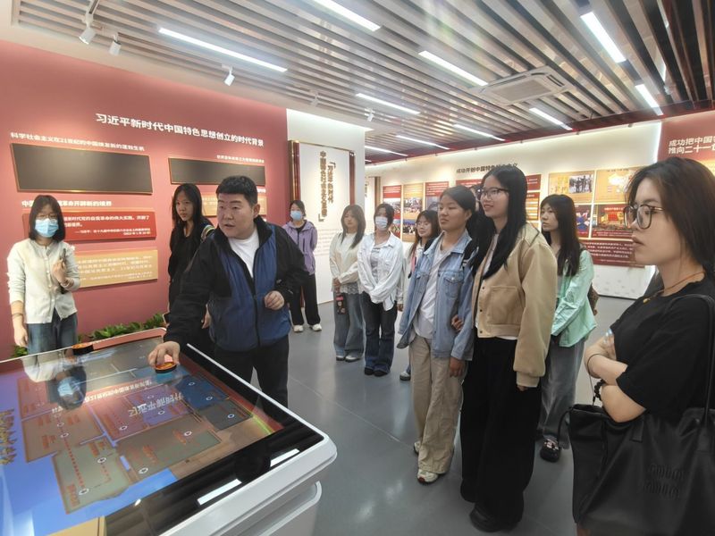 此次“场馆里的思政课”是我院深化“大思政课”建设的创新探索——以场馆为课堂、以历史为教材、以实践为答卷,让思政课突破传统边界,在时空对话中激活真理的生命力。场馆里的思政课打破了传统思政课的理论局限和时空限制,将抽象的理论知识转化为可感知、可体验的现实场景。在场馆中,学生们可以深刻领悟马克思主义中国化、时代化创新理论的真理力量和实践伟力,在沉浸式体验中感悟真理的力量,在实践探讨中凝聚青春担当。参观结束后同学们感触颇深,有学生表示,真理不是终点,而是永不停息的追问,有学生感慨,思政课从来不是抽象的说教,而是将理想信念融入历史与现实的对话。作为新时代青年,既要读懂“真理的味道”,更要践行“真理的传承”。