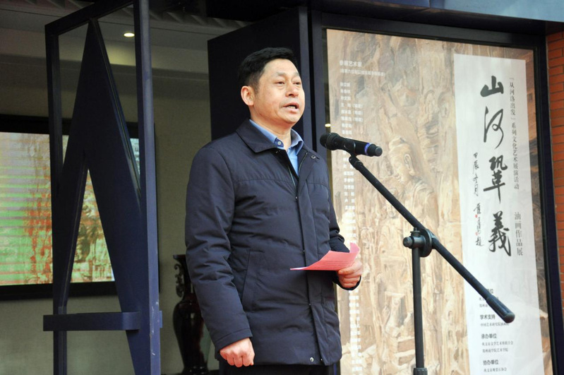 巩义市委常委、统战部翟旗部长讲话,翟部长感谢中国艺术研究院油画院对我市油画事业的肯定,并提出巩义市将继续致力于文化事业和文化产业的发展,积极推动群文创作的创新实践,为艺术家们提供广阔的舞台和良好的创作环境。