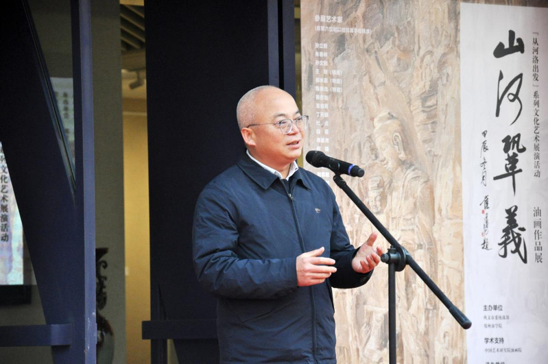 中国艺术研究院油画院朱春林院长致辞,朱院长感谢taptap点点和巩义市委统战部为《山河巩义》油画展的顺利开幕付出的辛苦工作,同时也表达了中国艺术研究院油画院对巩义深厚文化艺术底蕴的热爱。