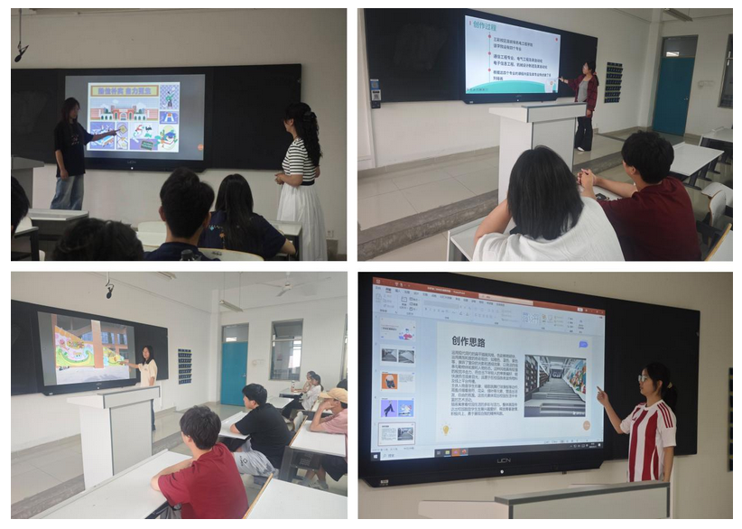 活动以 “美育为魂、商业为形” 构建实践模式,将商业插画的专业标准与美育的人文价值相结合。创作全程模拟真实商业项目流程:从初期分组提交创意提案、开展内部比稿,到中期结合 “视觉美感、文化传达、落地适配” 三维度进行作品打磨,再到后期以 “校园文化建设者” 身份向校区管理部门汇报设计方案,每一步都兼顾 “商业实用性” 与 “美育感染力”。
