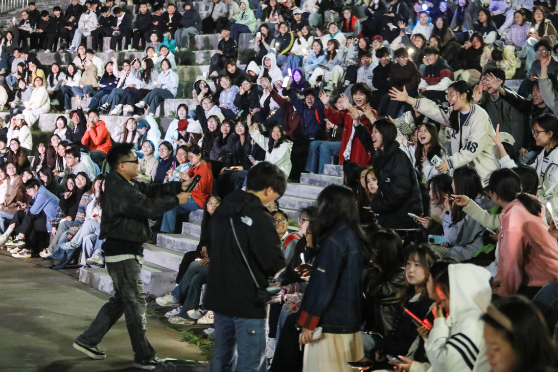 学校以音乐会为纽带,精准对接学子课余生活需求,为其缓解学习压力、抒发青春情怀、凝聚成长力量搭建了重要平台。演出当晚,璀璨灯光与漫天星光交相辉映,舞台上的学子表演者褪去青涩,以真挚的情感、饱满的状态,演绎着属于当代青年的青春之歌:原创曲目里藏着对校园生活的热爱、对未来的憧憬;经典传唱中饱含对家国情怀的坚守、对青春梦想的追求,更彰显着郑商人赓续前行的精神传承;流行演绎里迸发着新时代青年的朝气与担当,也传递着学子与学校同频共振、共赴新程的坚定信念。台下,学子们手持荧光棒挥舞成流动的“星海”,轻声合唱、尽情欢呼,掌声与欢呼声此起彼伏,既是学子间的同频共振,更是学校对青年成长的温暖滋养。这场盛会不仅让学子在艺术实践中提升审美、锻炼能力,更在互动中收获友谊、凝聚共识,为青年成长注入持久动力。
