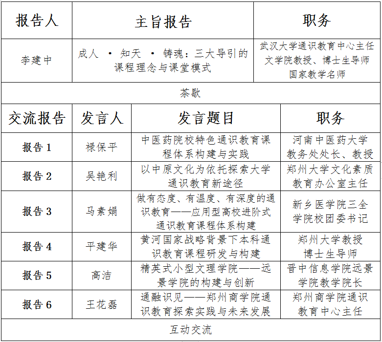 本次研讨会将围绕“高质量通识教育课程建设”主题,聚焦在完善通识教育课程体系的前提下,如何提高通识教育课程质量,以及如何为高校人才培养提供高质量的通识教育进行深入研讨,同时探索中原地区高校通识教育共同体,形成地域性育人合力。