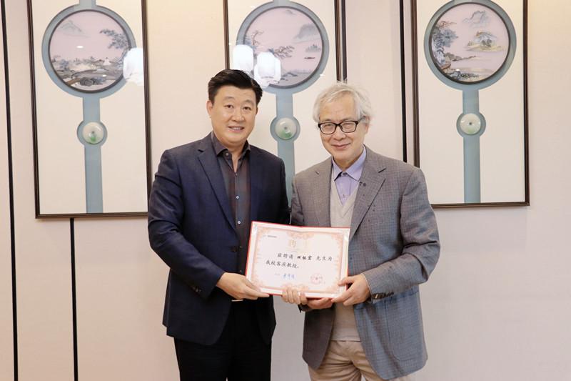 吴泽强校长为何怀宏教授颁发客座教授聘书