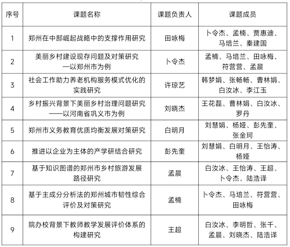 通识教育中心共有14人参与2024年度郑州市社科联申报,根据《taptap点点郑州市社科2024年度调研类课题申报通知》要求,经学院科研项目评审审查推荐小组对申报人员的申请书进行研究、论证、评议后,共推荐9人参与2024年度郑州市社科联项目的申报,名单公示如下:
