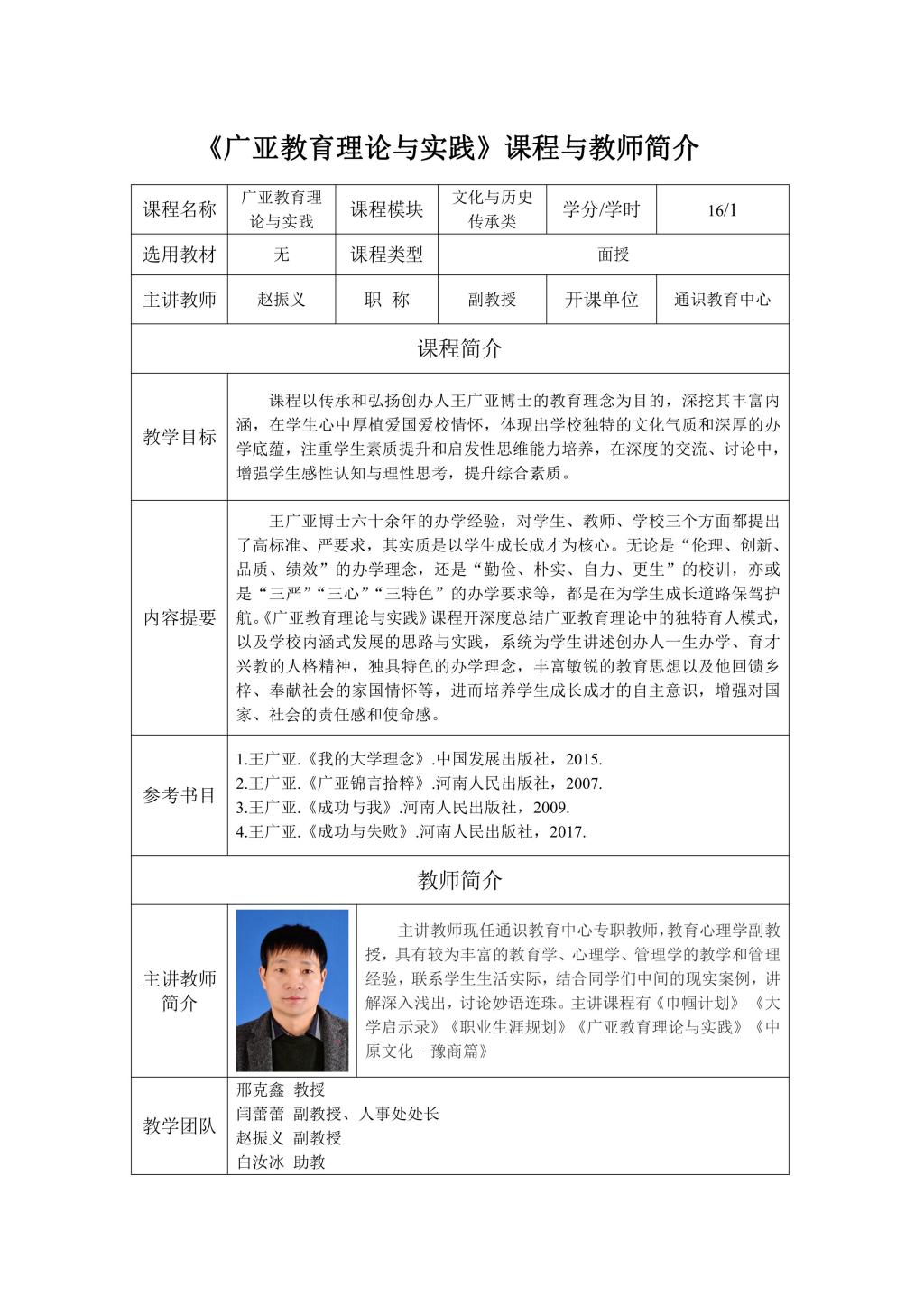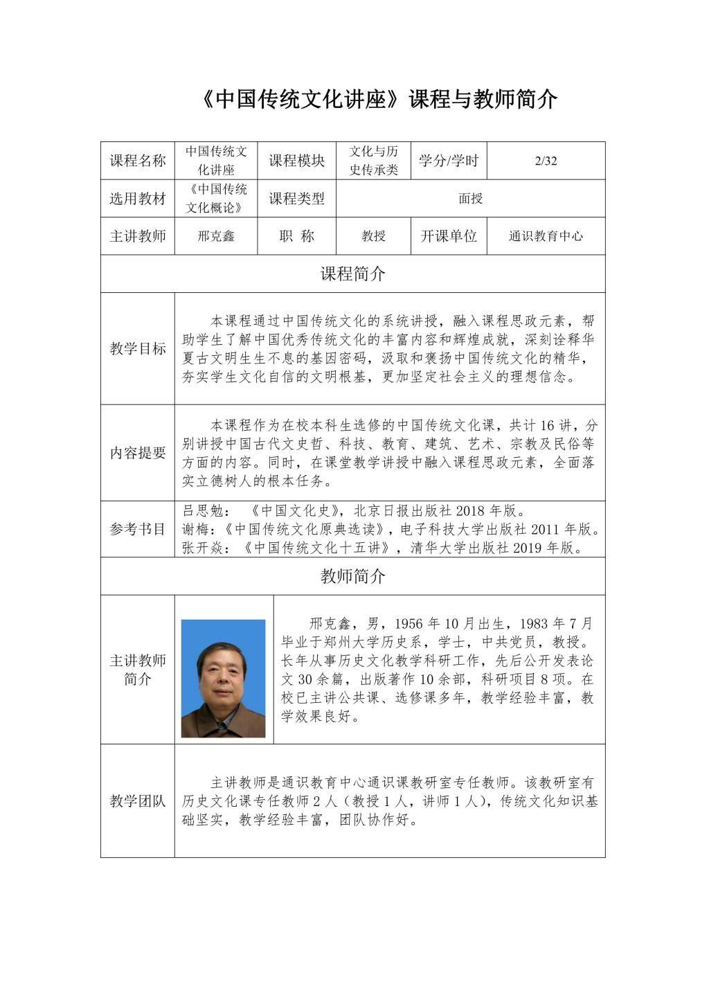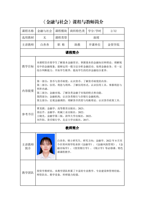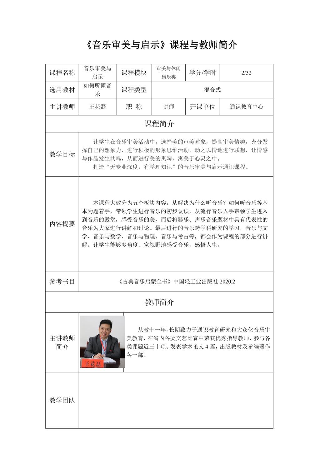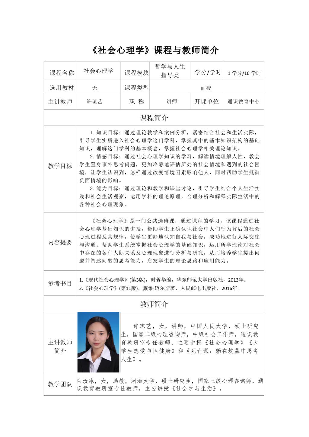 通识面授课程及教师简介