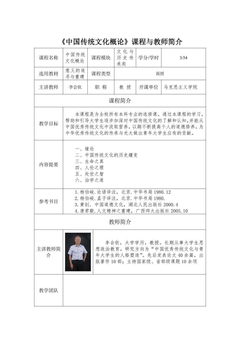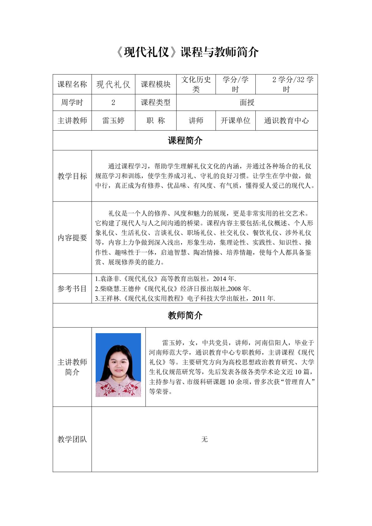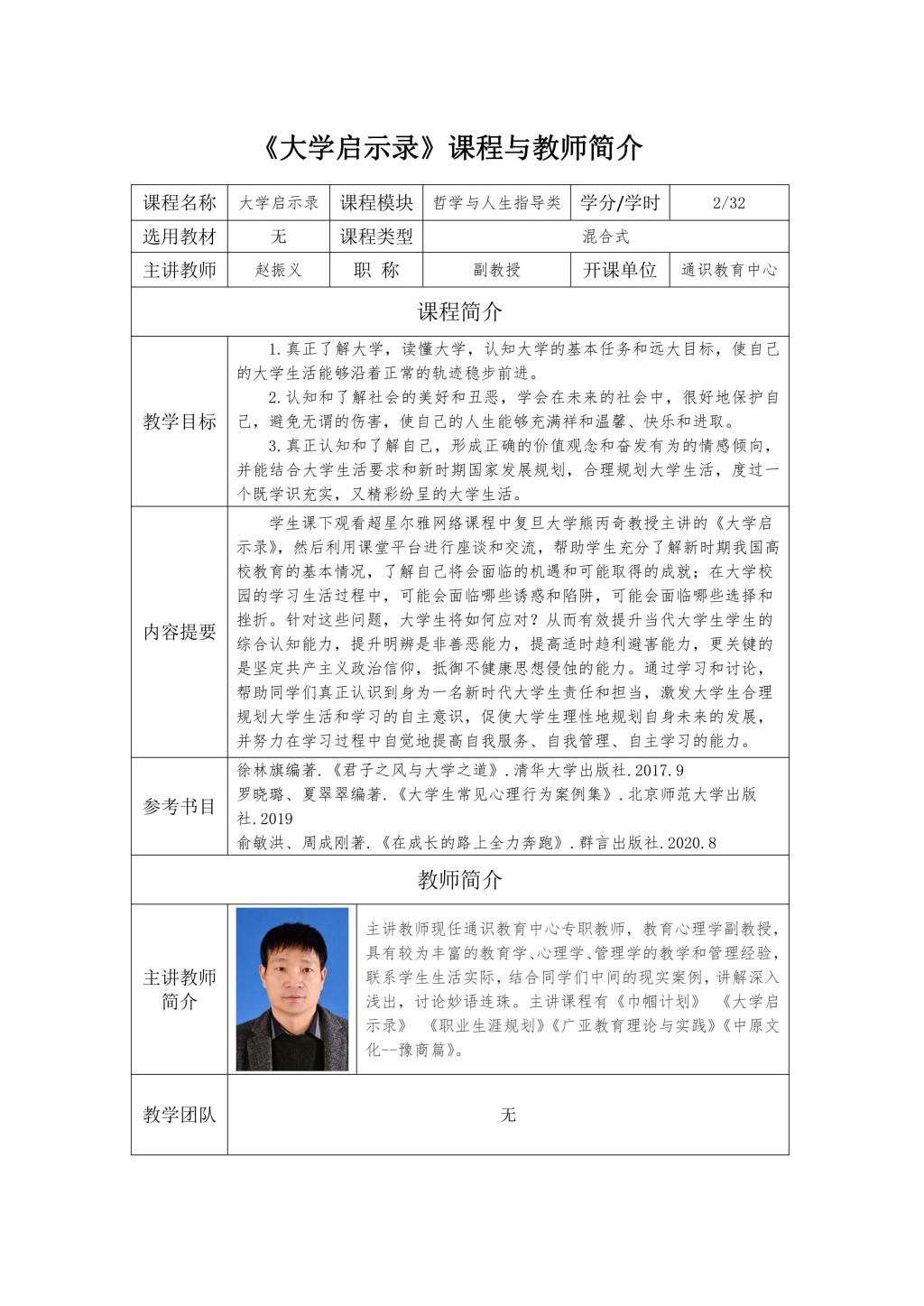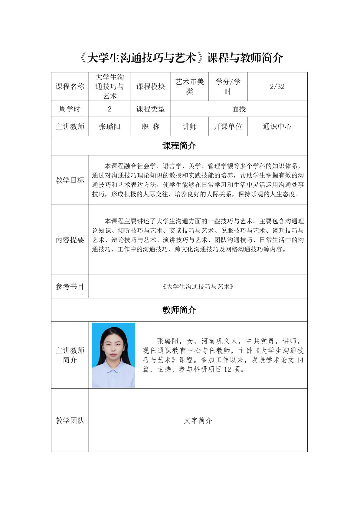 通识面授课程及教师简介