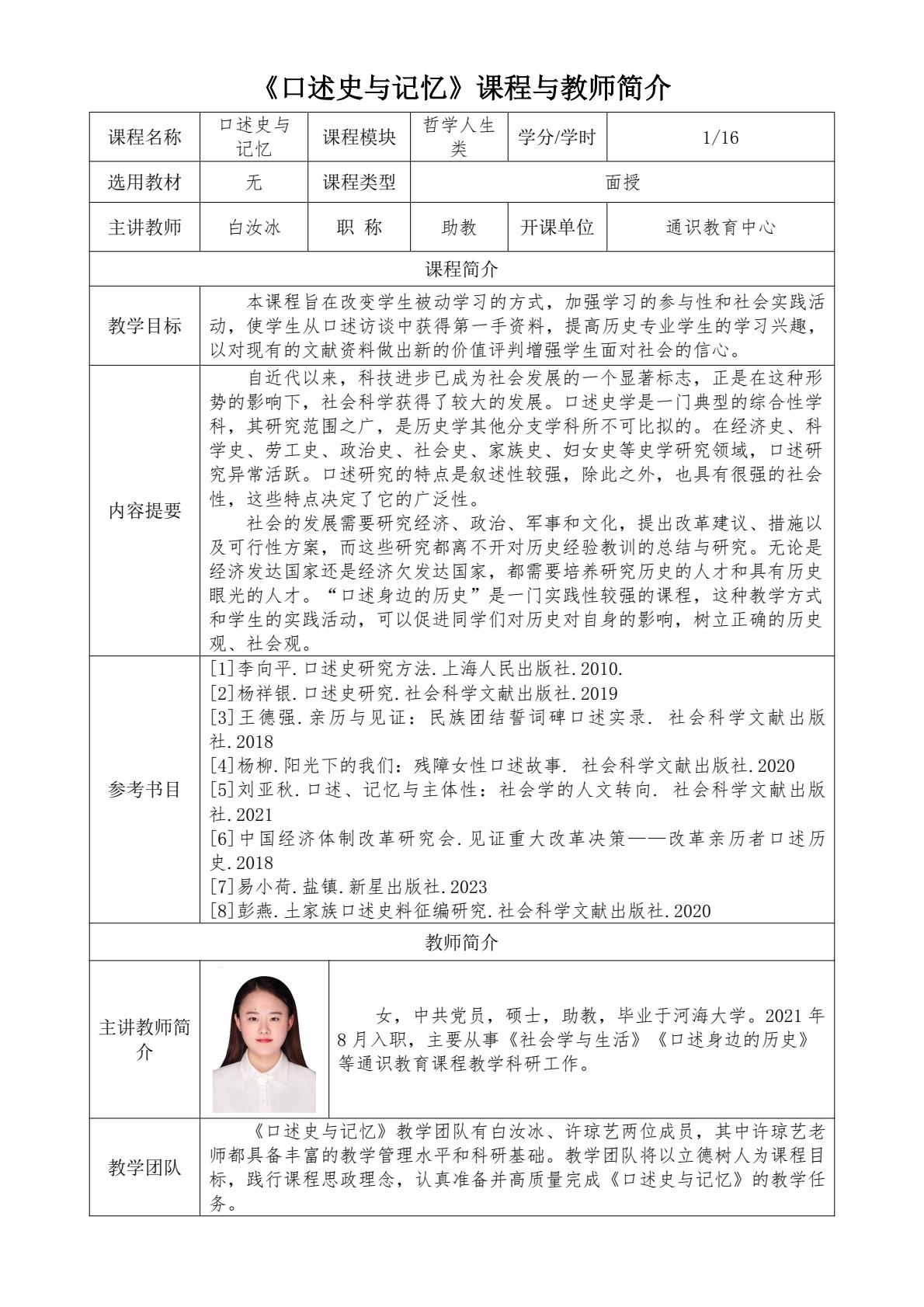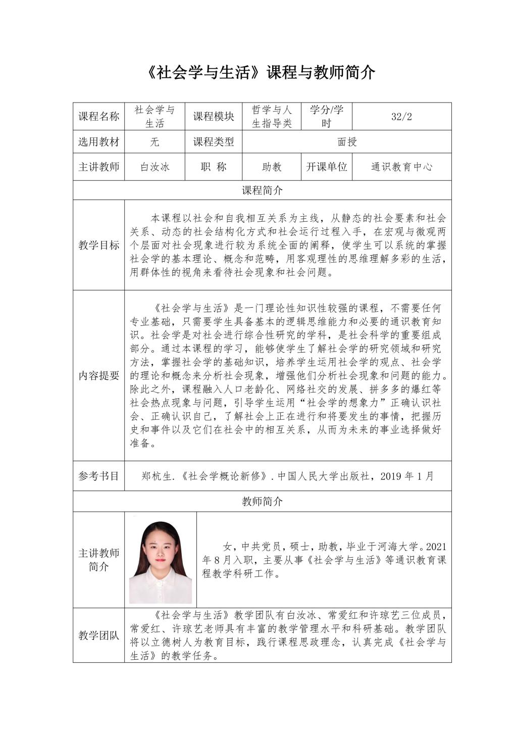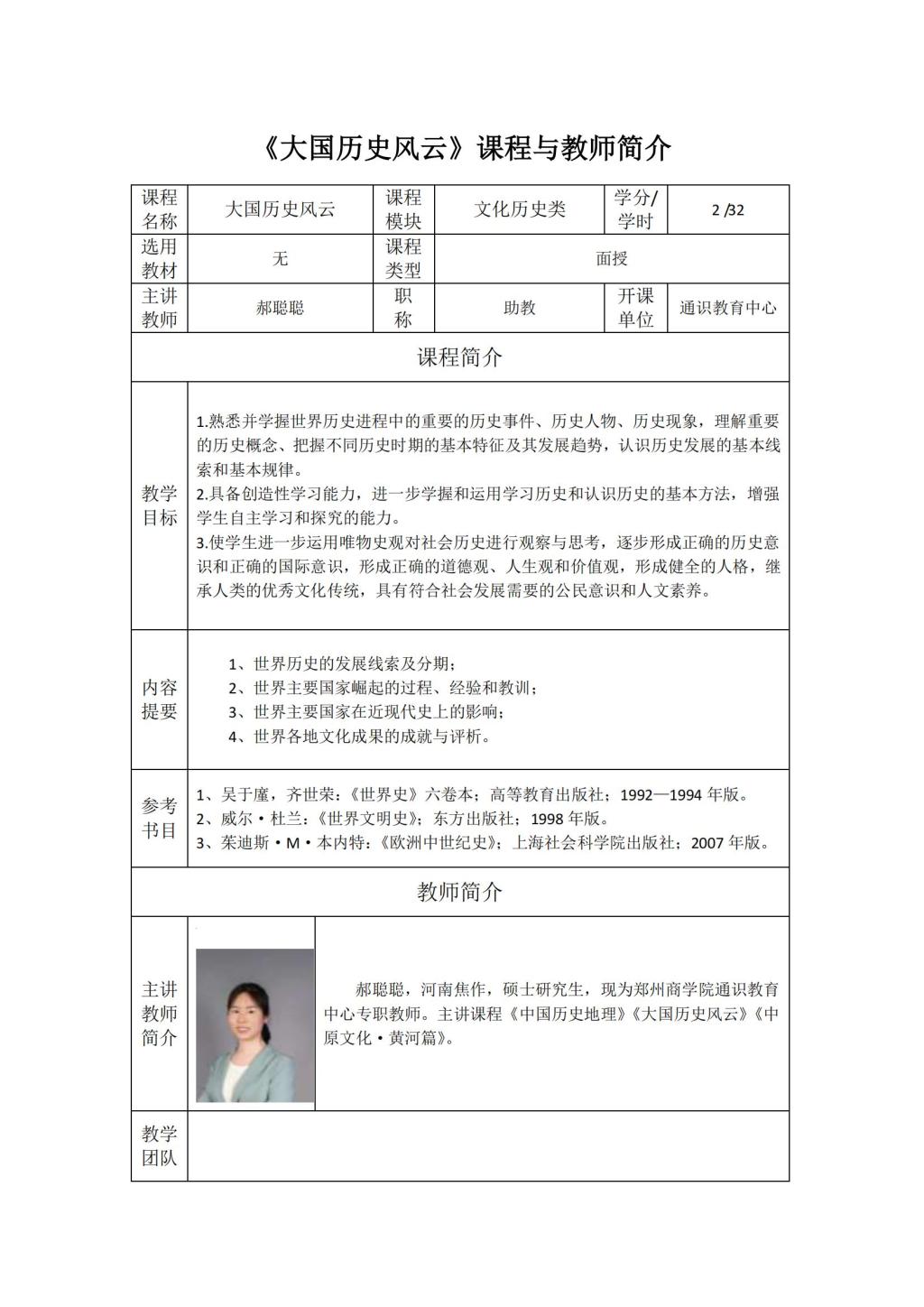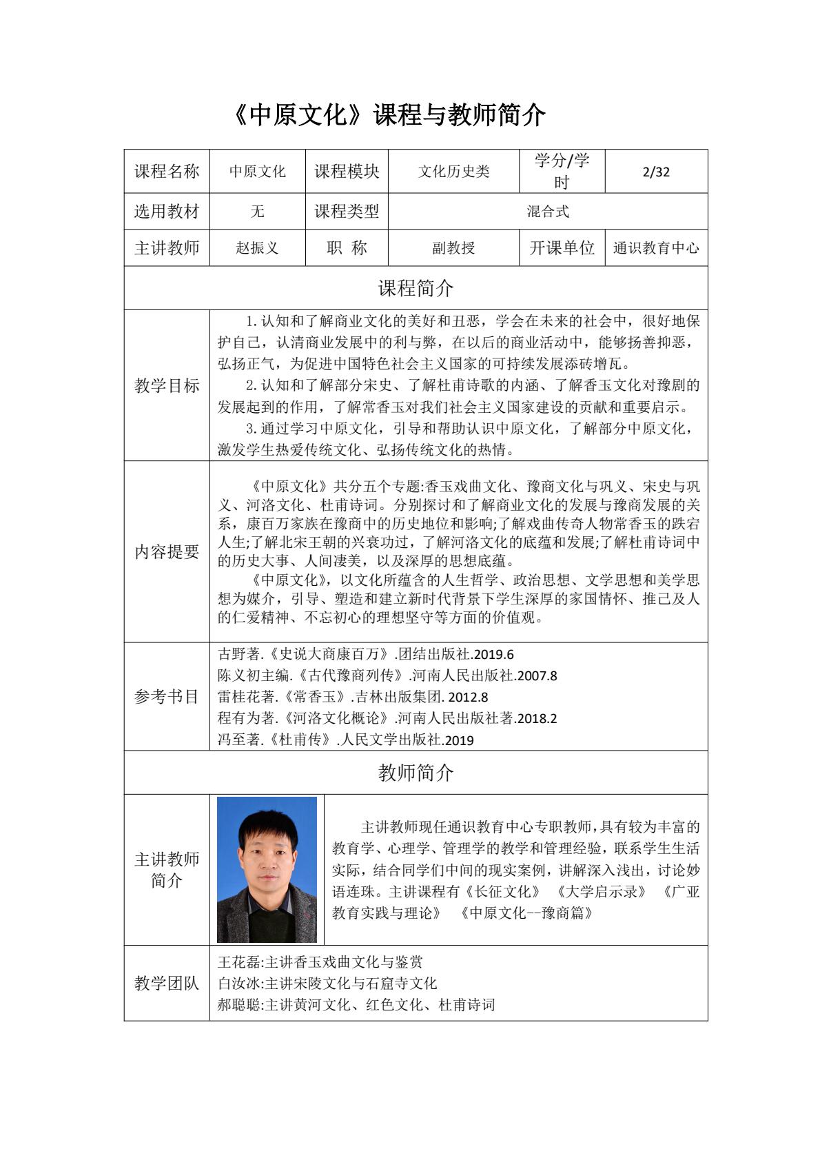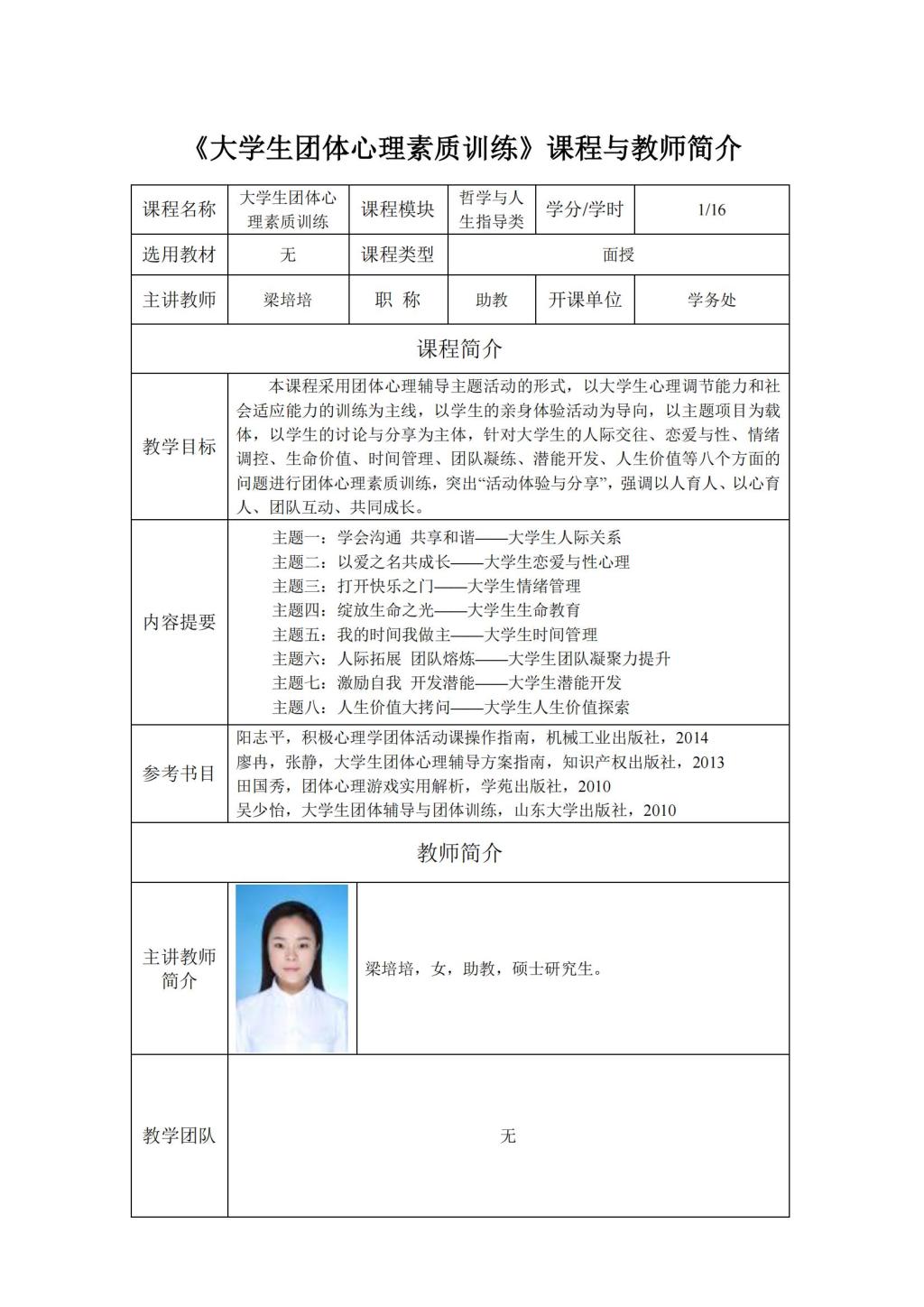 通识面授课程及教师简介