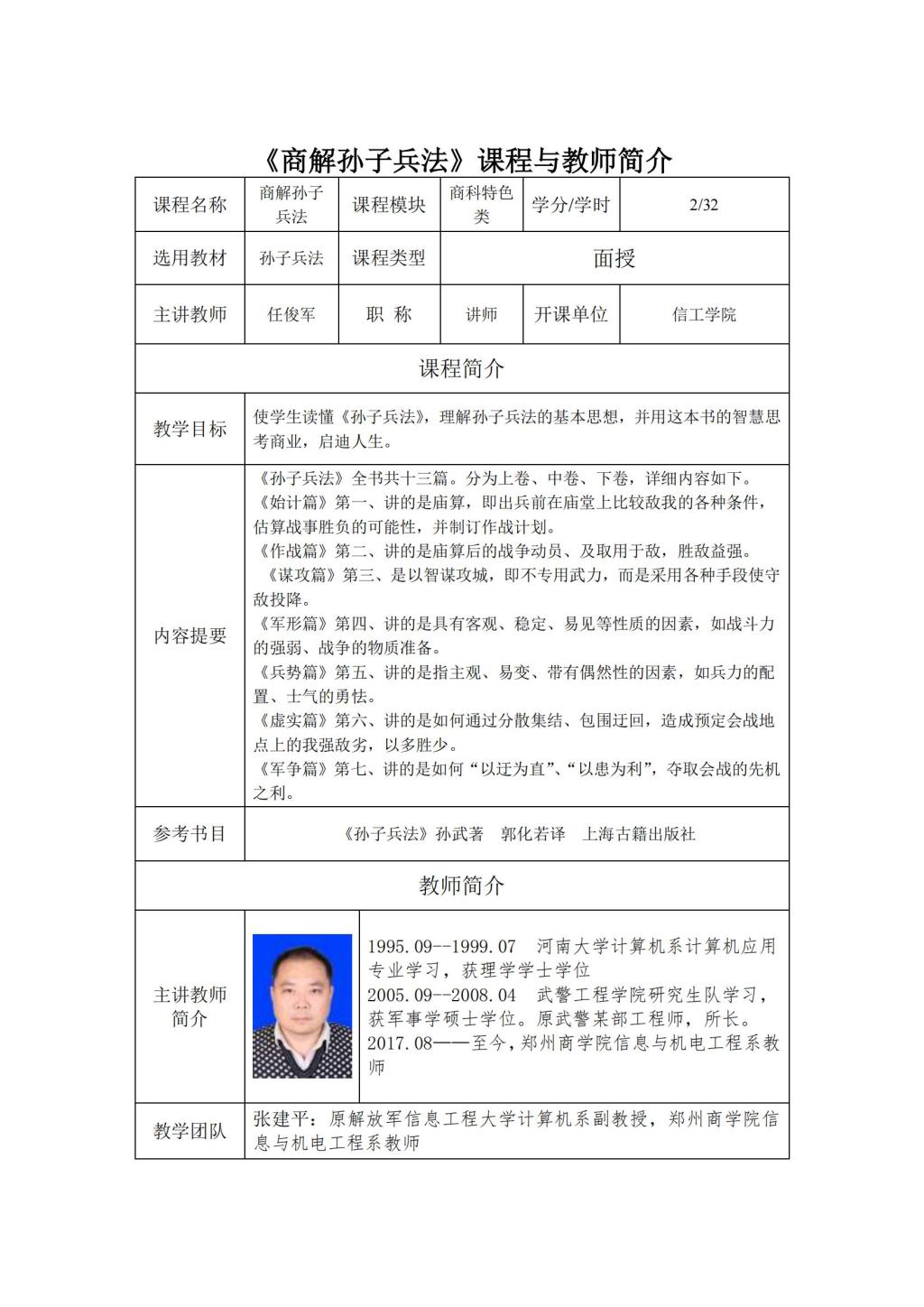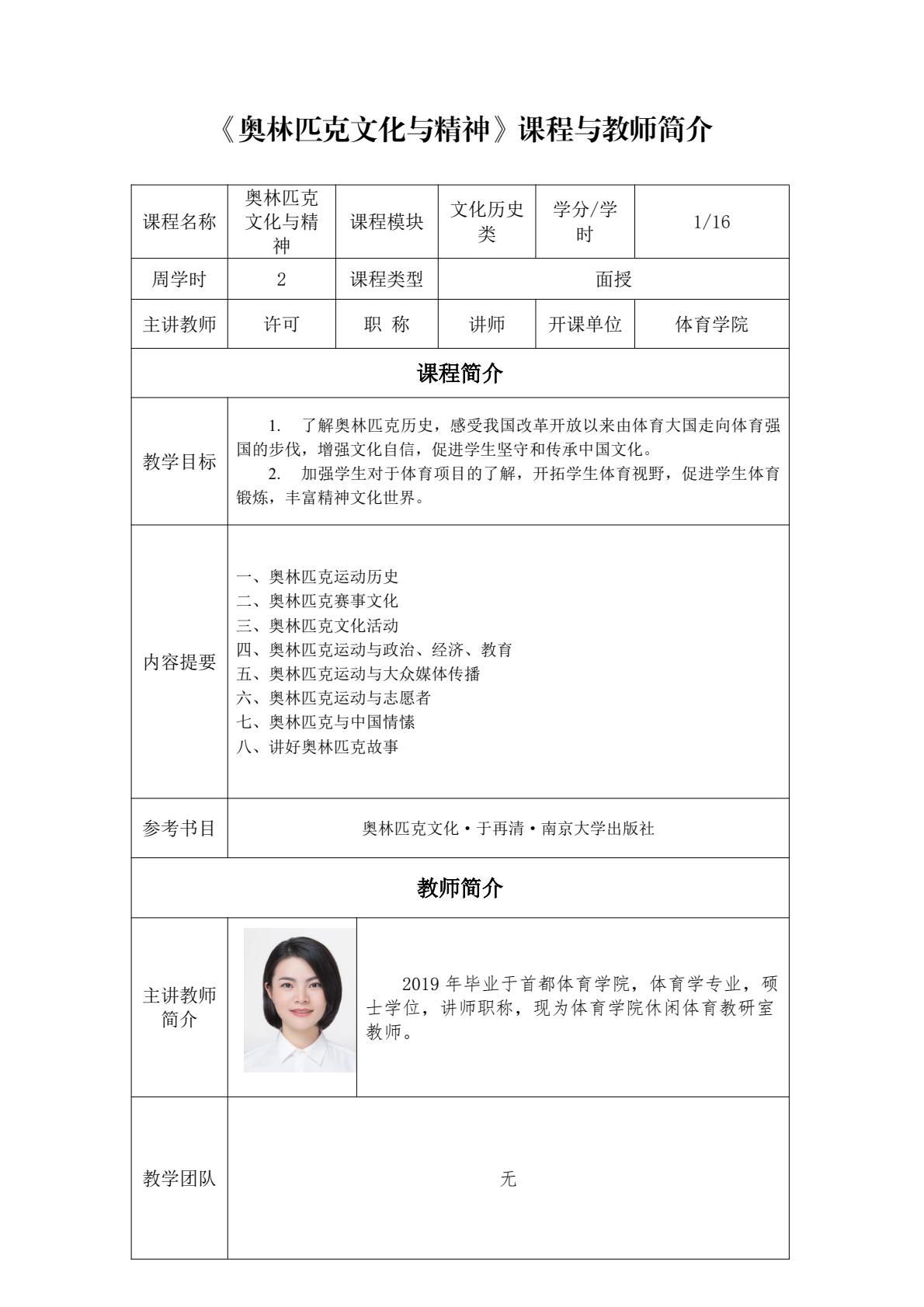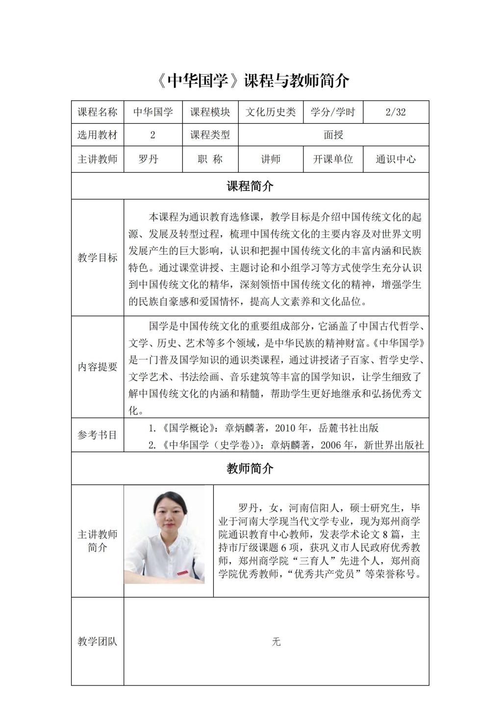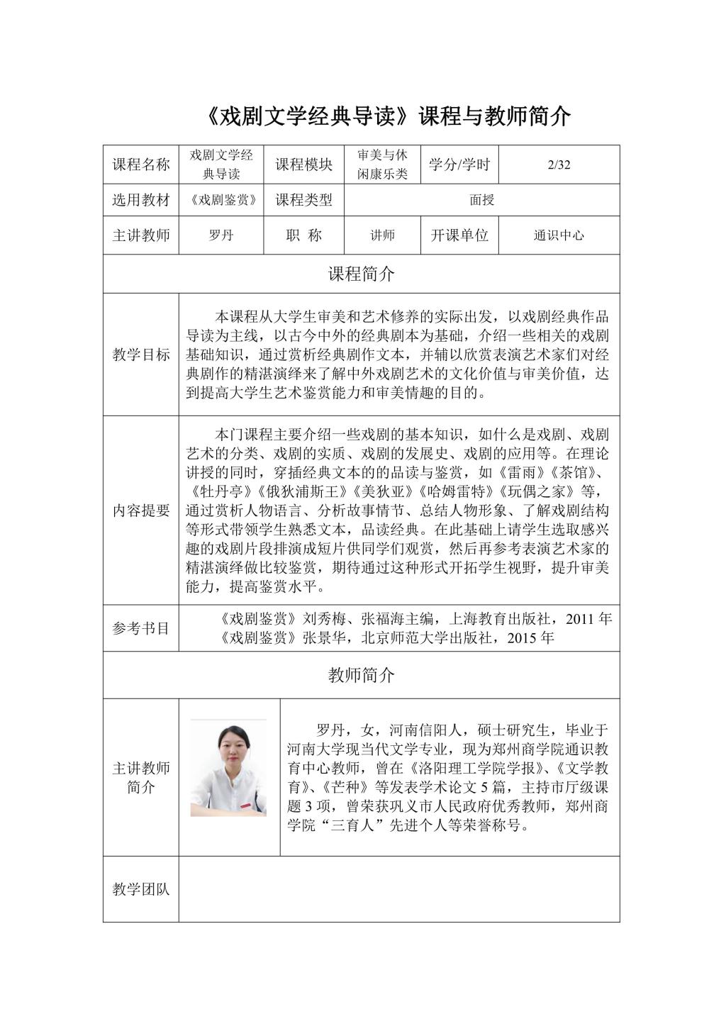 通识面授课程及教师简介