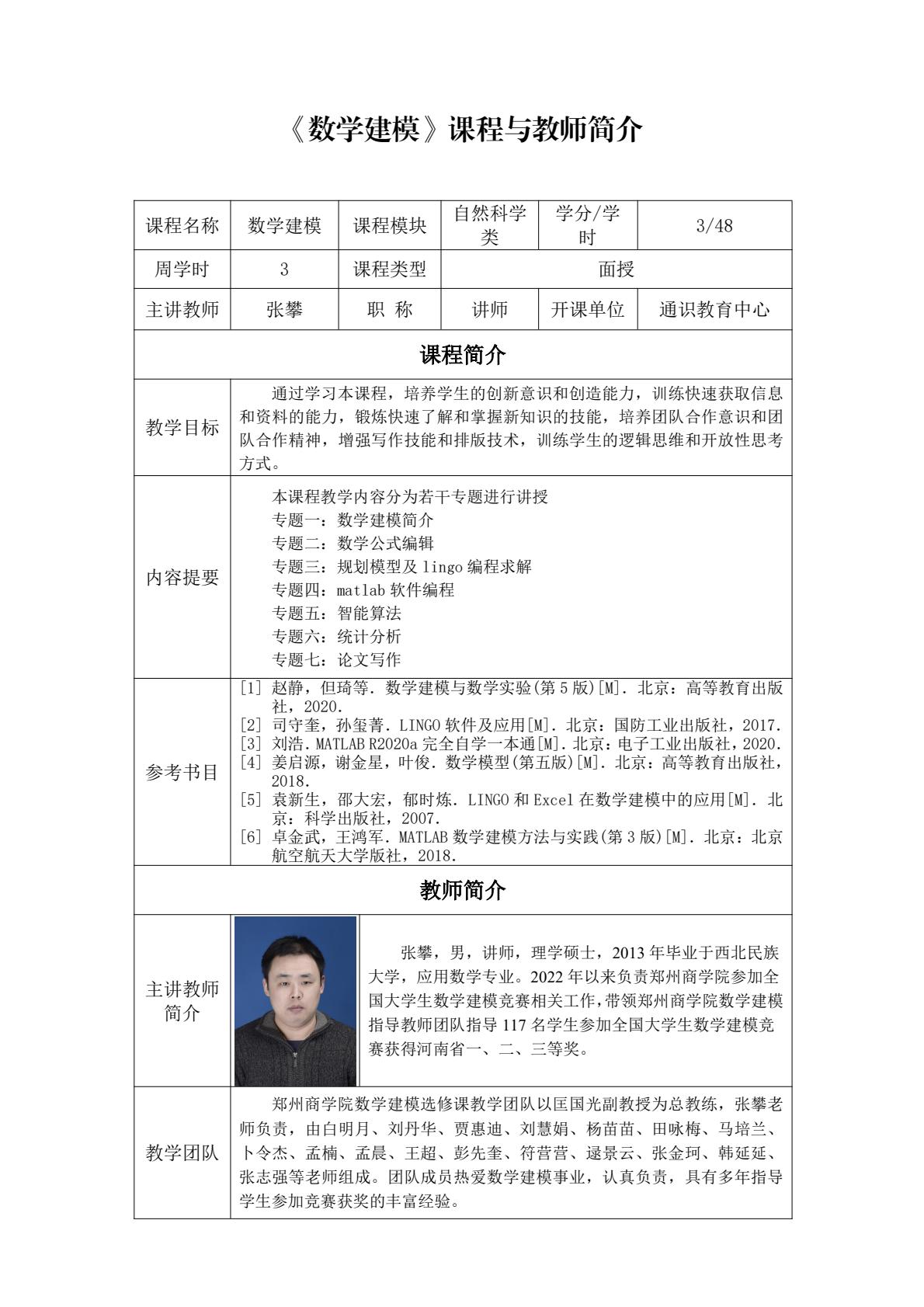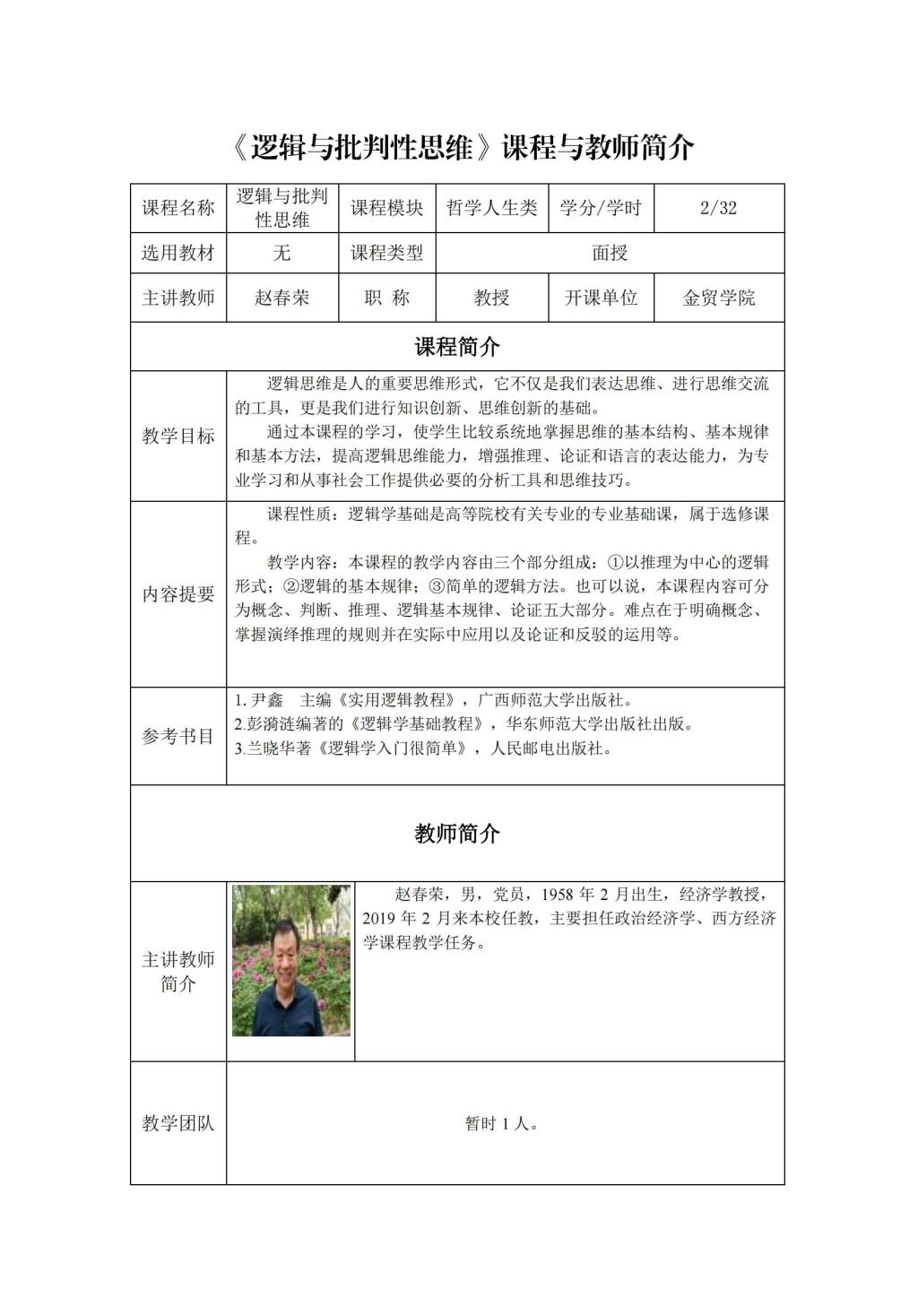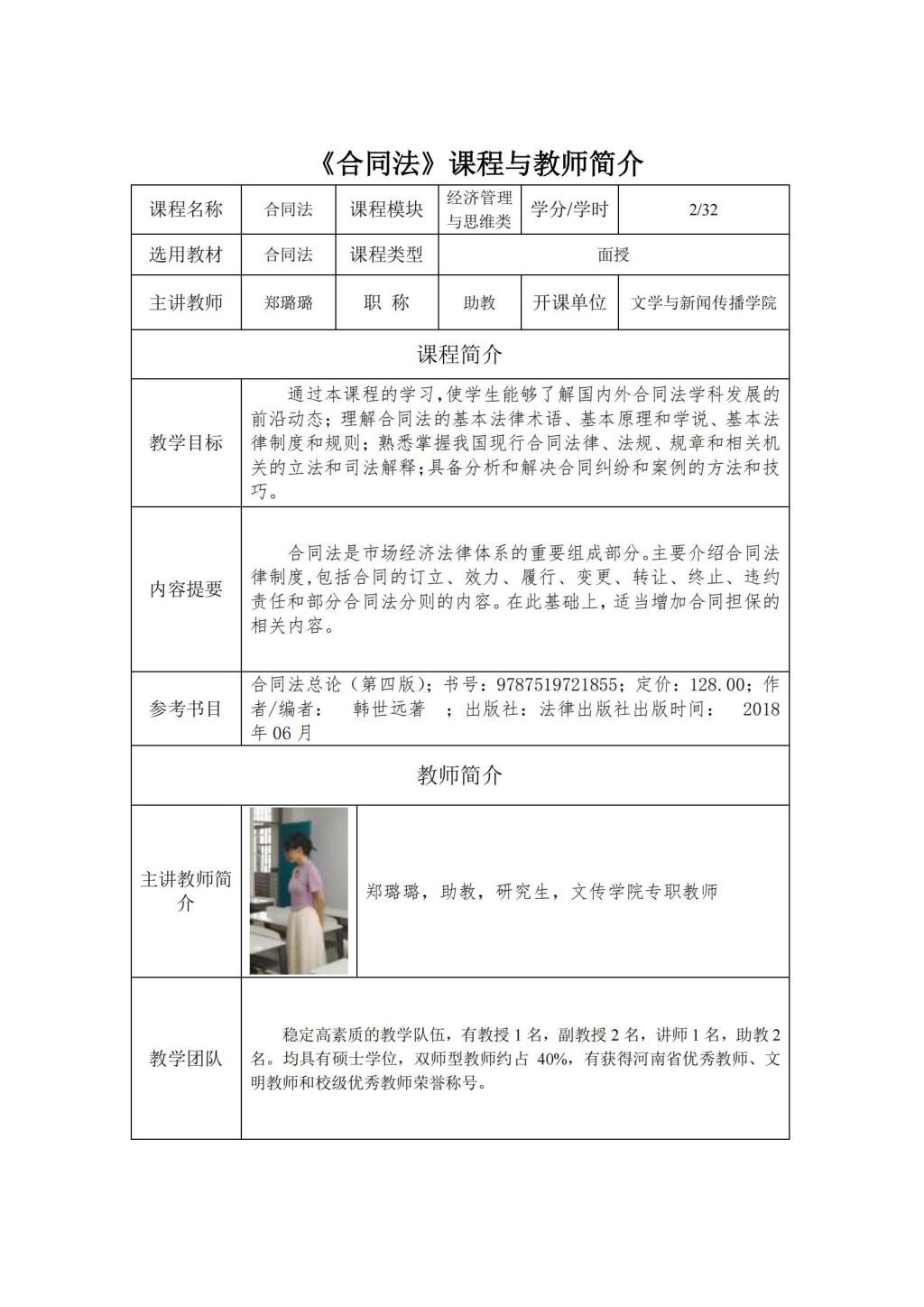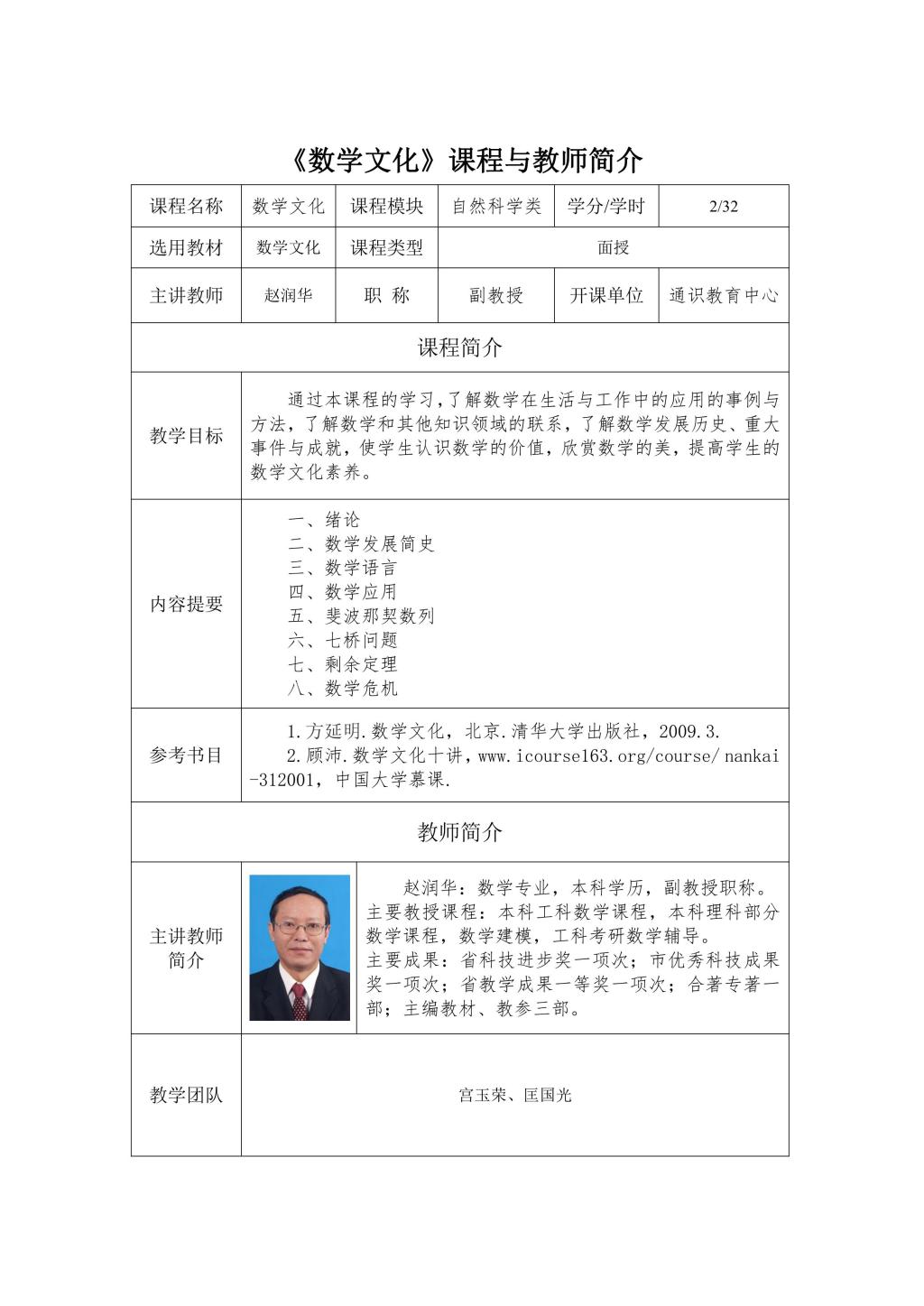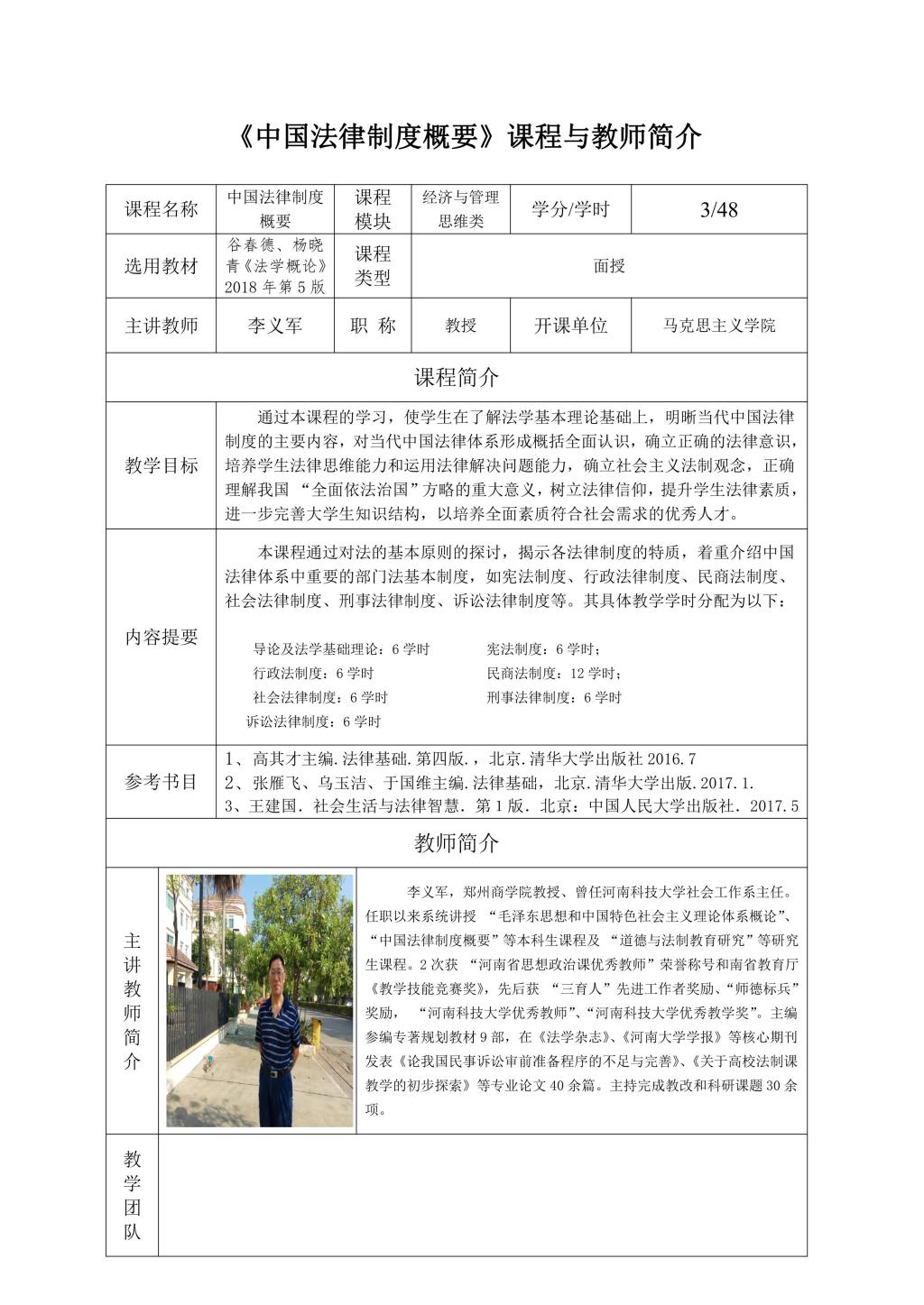 通识面授课程及教师简介