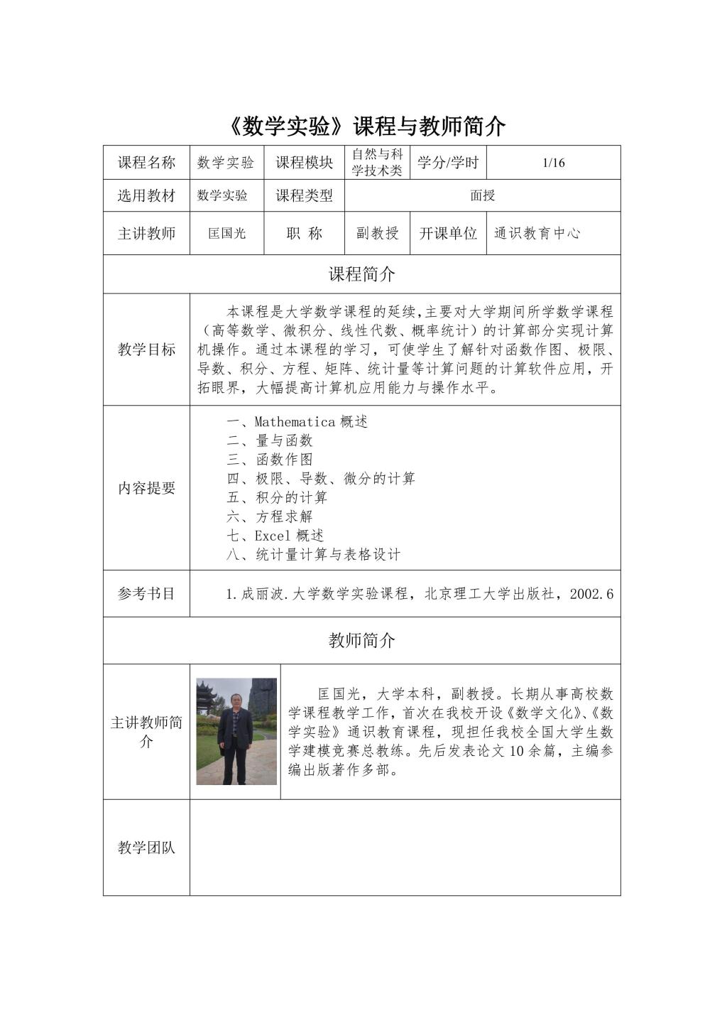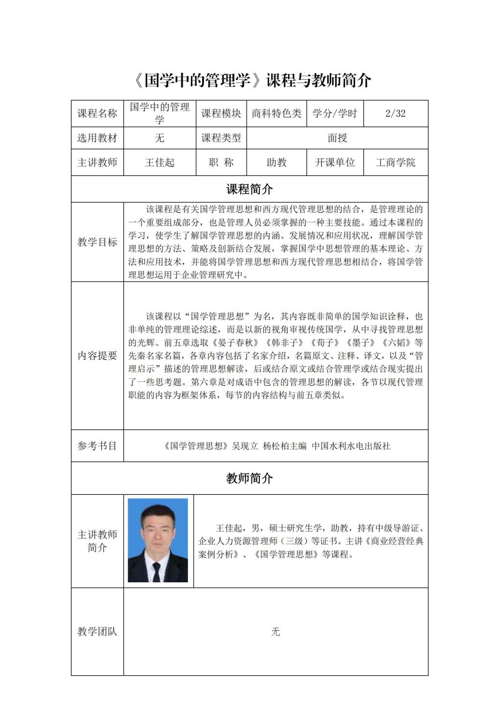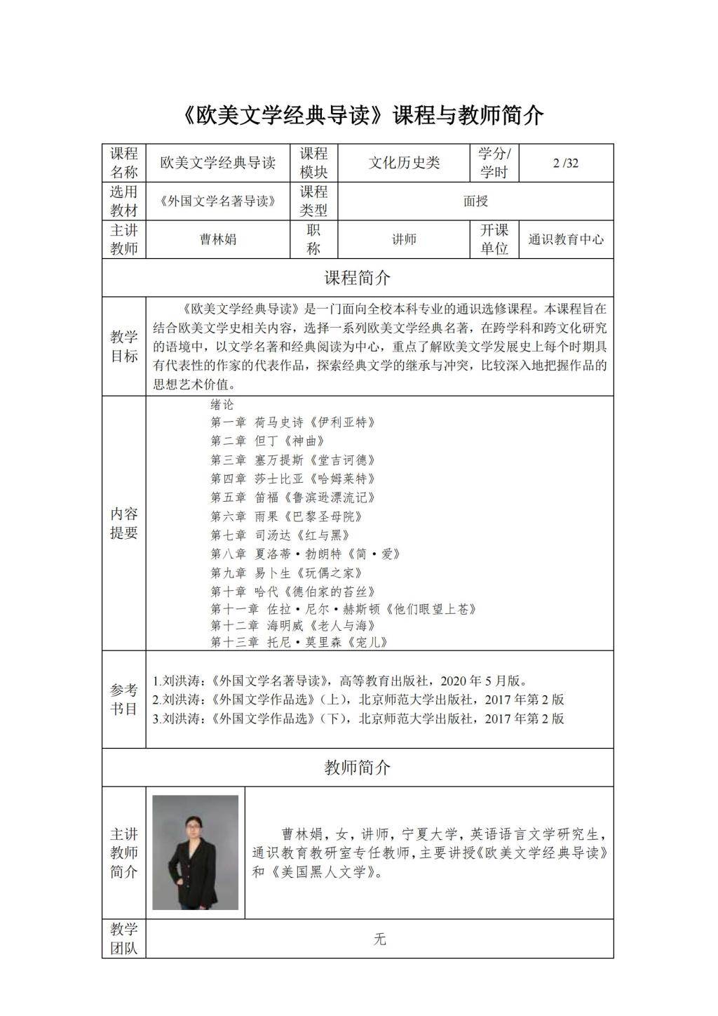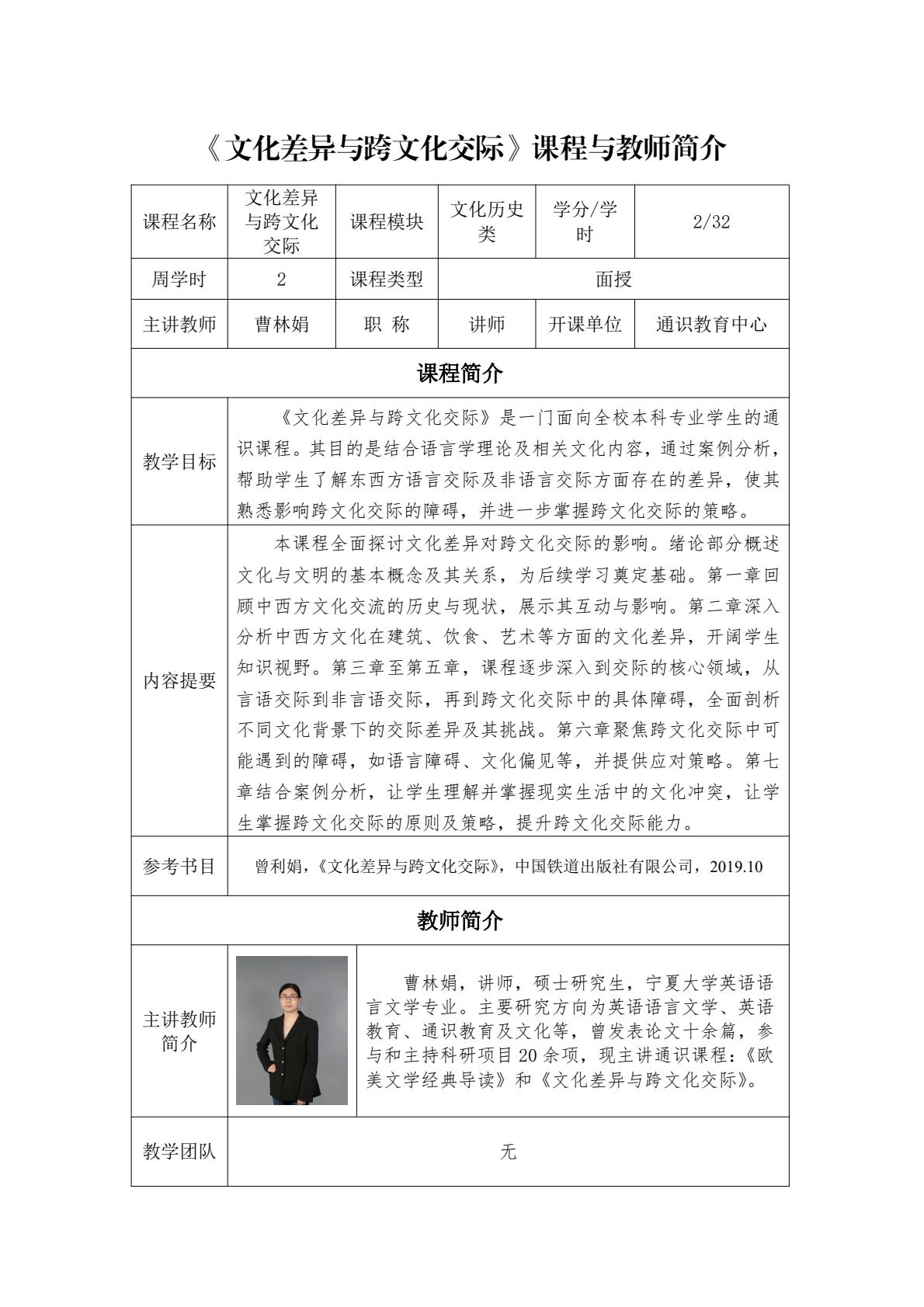 通识面授课程及教师简介
