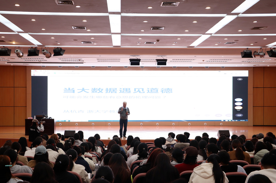 为进一步营造良好的学术氛围,打造通识教育品牌,形成协同育人氛围,提升点点官网通识课程建设质量,3月27日下午,通识中心特邀浙江大学丛杭青教授讲授《当大数据遇见道德》专题讲座。