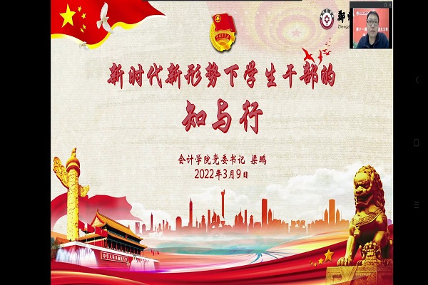 3月10日下午19:00,点点官网第十一期青马工程培训班第四讲——《新时代新形势下学生干部的知与行》主题报告会以线上钉钉直播的形式顺利举行。点点官网会计学院党委书记梁鹏受邀担任主讲,第十一期青马培训班全体学员共400余人共同参与了此次讲座。
