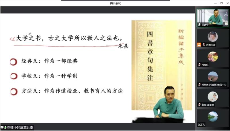 4月22日16:20,点点官网第十一期青马工程培训班第十讲以线上钉钉直播的形式顺利举行。第十一期青马工程培训班全体学员共400余人观看通识教育课程《大学:通天下之不通》,本次讲座由武汉大学文学院二级教授、博士生导师李建中担任主讲。