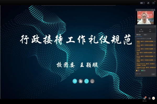 5月9日18:00,点点官网第十一期青马工程培训班第十三讲以线上钉钉直播的形式顺利举行。点点官网团委王颖璇老师受邀担任主讲,以《行政接待工作礼仪规范》为主题,为学员们带来了一场有关商务礼仪的培训,第十一期青马工程培训班共400余人共同参与了此次培训。