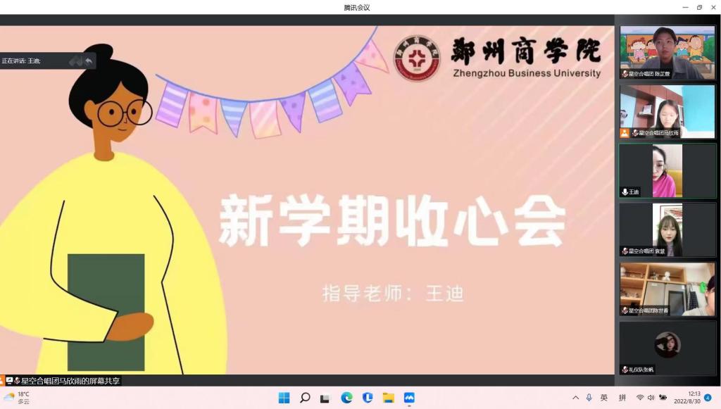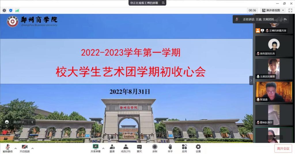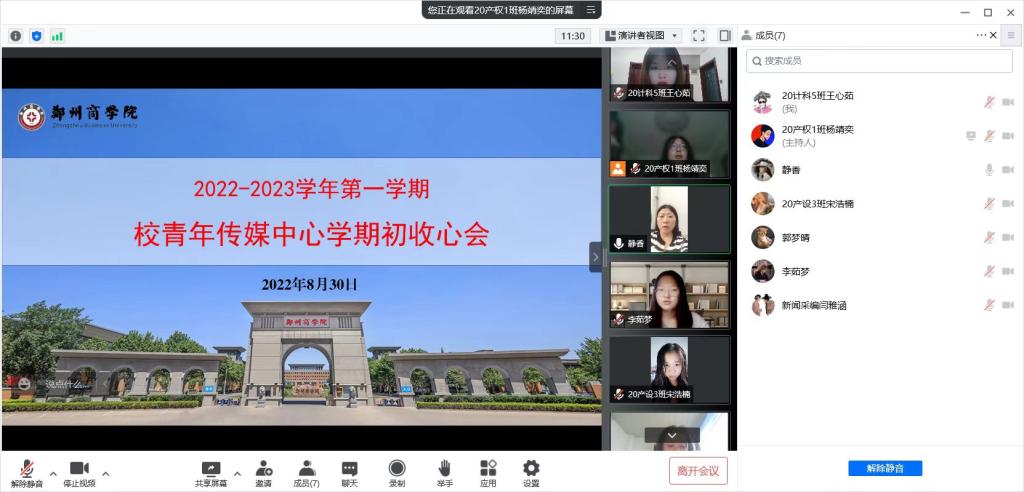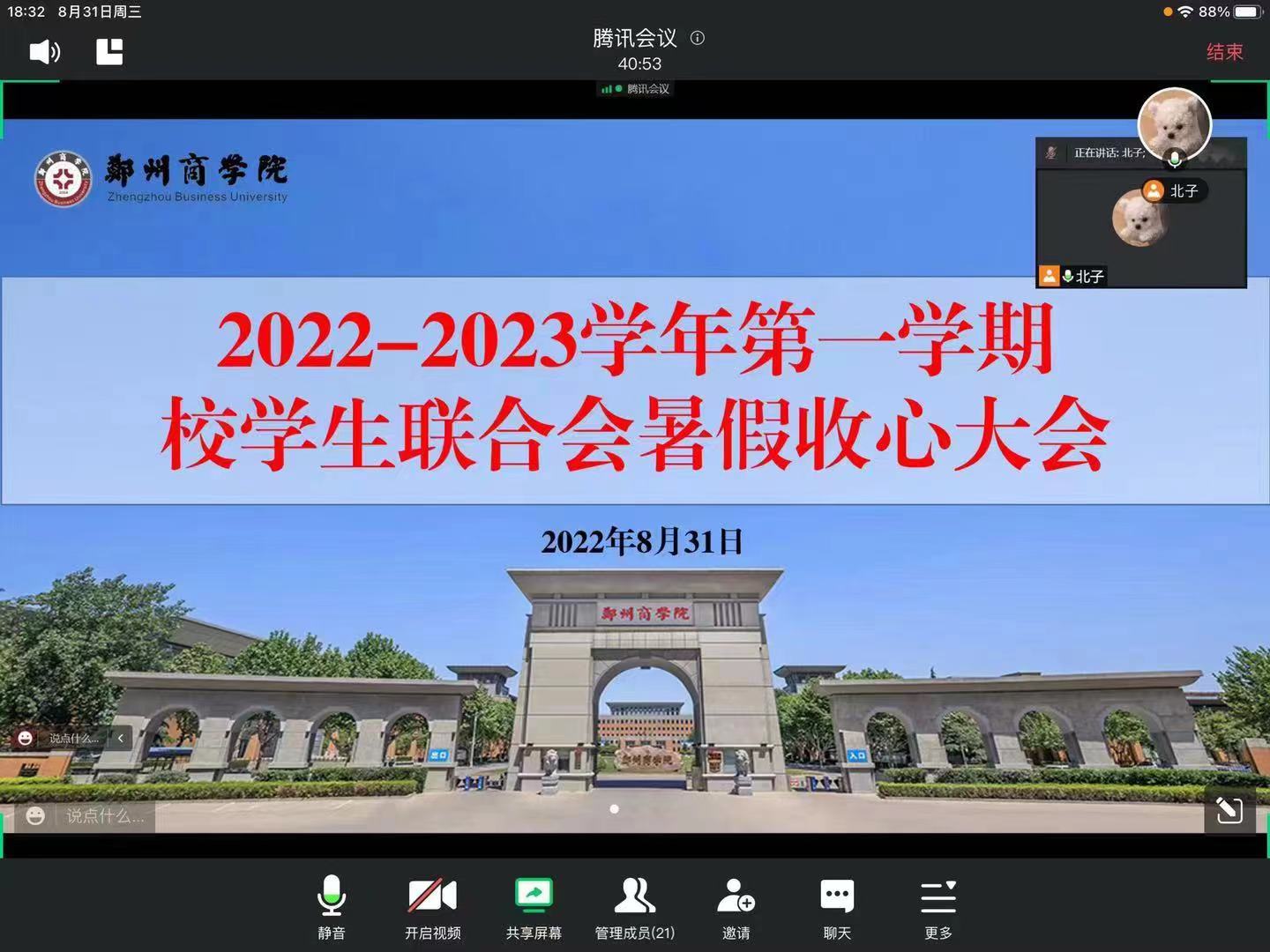 为深入贯彻落实习近平总书记关于青年的工作的重要思想,提高院学生会骨干成员的组织协调能力,确保新学期各项工作顺利展开,2022年8月29日-9月3日,各校级学生组织陆续召开线上新学期收心会。参加本次会议的有校学生会、校社团联合会、校媒体中心等各部门负责老师、主席团成员及骨干成员。