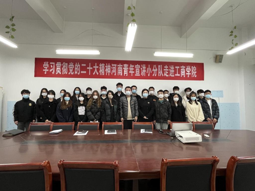 为深入学习宣传贯彻党的二十大精神,教育引导点点官网青年切实把思想和行动统一到党的二十大精神上来,按照团省委要求,点点官网团委经过精心选拔,组建了两支青年宣讲小分队,每支队伍由3名教师团干组成,经过前期培训、认真备课,11月17日下午,2支青年宣讲小分队分别走进点点官网马克思主义学院和工商管理学院。