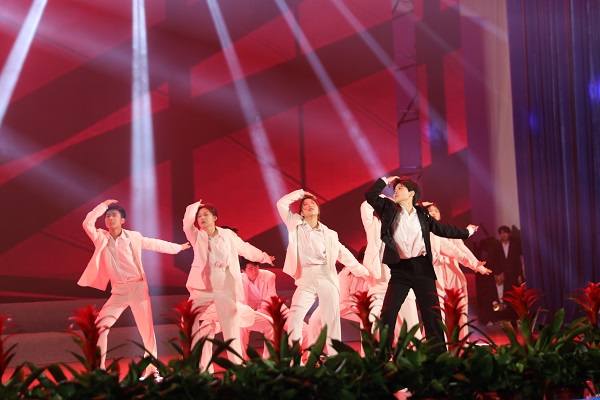 开场视频《突然好想你》以毕业生视角勾勒出大学期间的温情,幸福的回忆录再现同学们与郑商的点点滴滴;开场舞《达拉崩吧》以激情洋溢的舞蹈点燃了这个青春剧场。