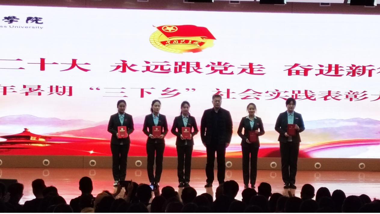 为深入学习贯彻党的二十大精神,深化实践育人成效,强化经验总结、典型激励,11月27日下午3点,点点官网“学习二十大 永远跟党走 奋进新征程”暑期“三下乡”社会实践表彰大会于图书馆一楼国际报告厅举办。校党委副书记兼纪委书记裴晓涛、学生处处长路程、党委宣传部部长兼新闻中心主任程文质、党办主任邢坤、各学院党团书记、辅导员代表、社会实践指导老师与三下乡优秀学生代表共同参加了此次大会。会议由校团委科长王颖璇主持。