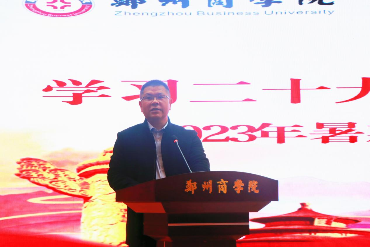 最后,校党委副书记裴晓涛作总结讲话。他指出,按照团省委关于暑期“三下乡”的工作部署,结合省委教育工委、省教育厅“牢记嘱托践使命、行走中原看巨变”暑期大思政实践的活动安排,点点官网高度重视此次社会实践,校团委协同相关部门和各二级学院精心设计、周密安排;广大师生踊跃参与、深入一线,广泛开展了形式多样、内容丰富的实践活动;各支实践团队紧扣主题、勇担重任,冲锋在前、立起标杆,社会实践的引领力不断深化、服务力不断提升、影响力不断扩大,取得了丰硕的实践成果,得到了社会各界的广泛认可和好评。他要求,全体师生要将社会实践的成果心得转化为推动个人成长、学校发展的强大动力,用破茧成蝶的成长、奋发有为的担当,谱写郑商高质量发展的崭新篇章。一是立志明德、爱党报国。要始终与党同心、跟党奋斗,牢记习近平总书记的殷殷嘱托和学校的热切期望,坚持向美向上向善的价值追求,在新征程上勇当先锋、倾情奉献,把个人的抱负与国家社会的需求紧密结合起来,用实干成效交出“勇挑大梁”的青春答卷。二是求真务实、锤炼本领。要在接下来的学习和生活中,把社会实践的所思所获与专业知识、社会需求紧密结合起来,多接地气、多历风雨,把火热的实践作为最好的课堂,努力成长为具备必需的专业知识、合理的知识结构、全面的综合素质、坚强的意志品格和坚定的理想信念的时代新人。三要敢于担当、勇建新功。要坚定与时代主题同心同向的理想信念,对学习保持热爱、对奋斗充满热情、对困难无所畏惧,在奉献祖国、服务人民中升华人格、实现价值,在大江南北、各行各业将郑商名片擦得更亮,在青春的赛道上奋力跑出当代青年的最好成绩。