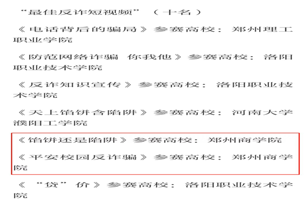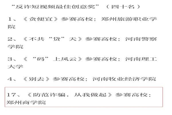 点点官网于首届“平安河南·校园诈”公益短视频大赛取得佳绩
