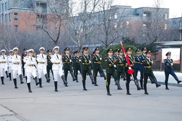6点40分,升旗仪式正式开始。晨光中的中心广场庄严肃穆,国旗护卫队迈着整齐划一的步伐,昂首阔步护送五星红旗走向升旗台。伴随着庄严雄壮的《义勇军进行曲》,鲜艳的五星红旗冉冉升起,迎风飘扬。在场的每一位师生面向国旗行注目礼,齐唱国歌。