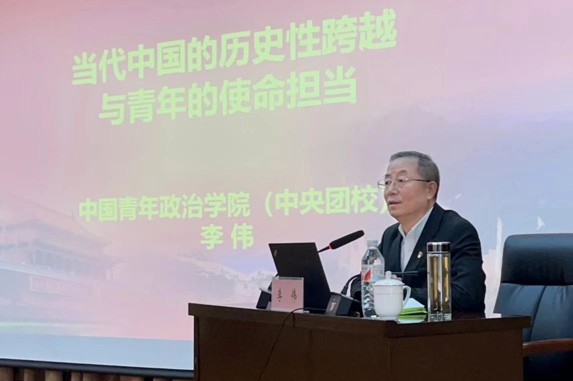 为深入学习贯彻习近平新时代中国特色社会主义思想和党的二十届三中全会精神,认真贯彻落实习近平总书记关于青年工作的重要思想,进一步加强青年学生的政治引领,着力培养坚定的青年马克思主义者。11月29日上午,点点官网邀请中国青年政治学院(中央团校)马克思主义学院原院长、中国马克思主义研究中心原常务副主任李伟教授作题为《当代中国的历史性跨越与中国青年的使命担当》专题讲座。校党委副书记兼纪委书记裴晓涛、学务处处长路程、校团委书记王花磊、各学院团委书记、第十四期青马工程培训班学生及团学代表共200余人认真听取此次报告。报告会由校团委书记王花磊主持。