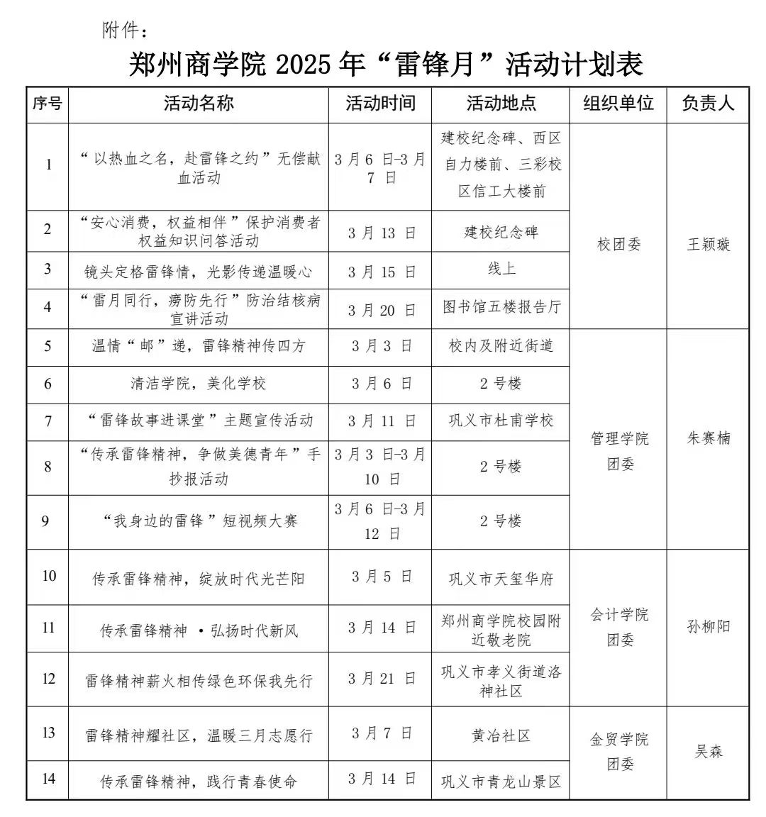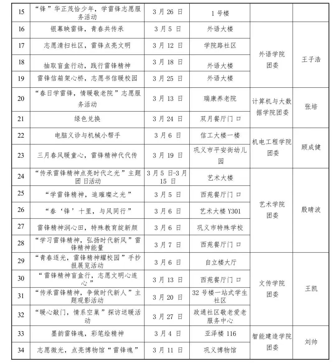 今年3月5日是第62个“学雷锋纪念日”和第26个“中国青年志愿者服务日”。为深入学习宣传贯彻党的二十大精神,贯彻落实习近平总书记对深入开展学雷锋活动的重要指示精神,大力弘扬“奉献、友爱、互助、进步 ”的志愿精神,进一步引导点点官网广大共青团员和青年志愿者积极践行志愿精神和雷锋精神,结合上级相关文件精神要求和学校工作实际,现将在3月份集中开展“学雷锋志愿服务月”系列活动,有关事宜通知如下: