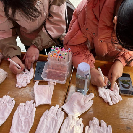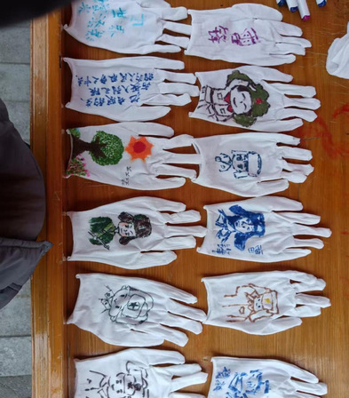 活动伊始,组织者发放白色手套,并准备了马克笔、水彩笔、针管笔等各种涂料,让参与者尽情发挥。许多同学积极参与,他们拿起画笔在手套上绘制雷锋形象、记下雷锋事迹、写下激励人心的雷锋语录,把雷锋精神用图案和文字的形式呈现了出来。这些手套不仅是一件作品,更像是一个个流动的心灵指引牌,时刻提醒着同学们要保持积极的心态去关爱他人和传递温暖,让同学们更深刻的理解和践行了雷锋精神。