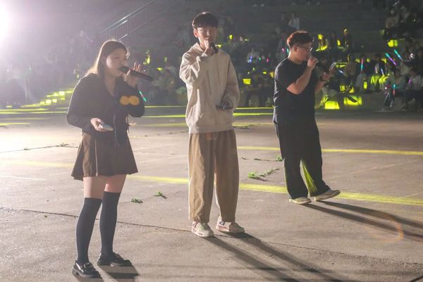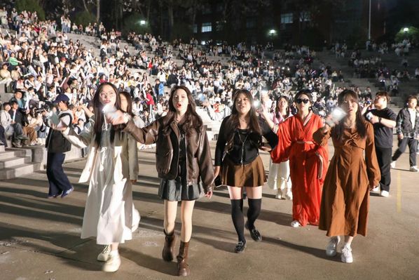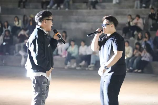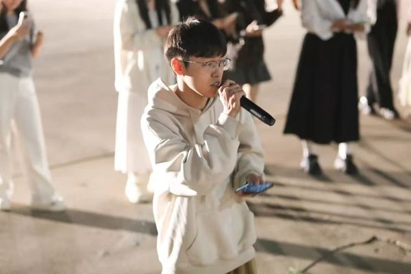 当追光柱劈开黑暗,握着话筒的指尖都在发光。高音像窜天猴直冲穹顶,抒情片段连空气都变成粉色泡泡。郑商学子在歌声中欢呼,一起推动这场视听盛典走向高潮!