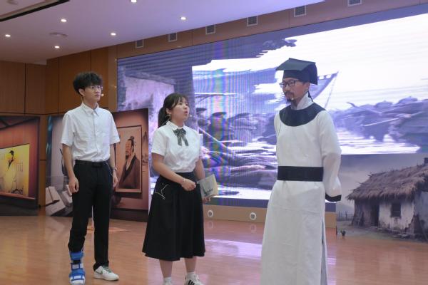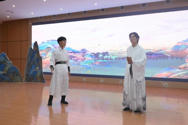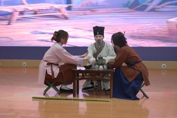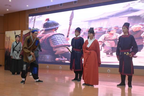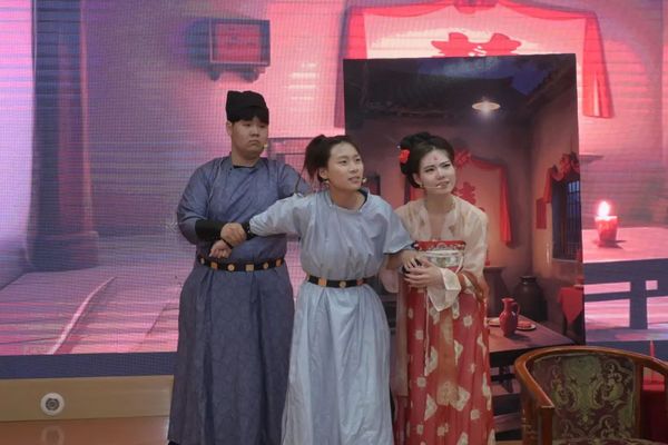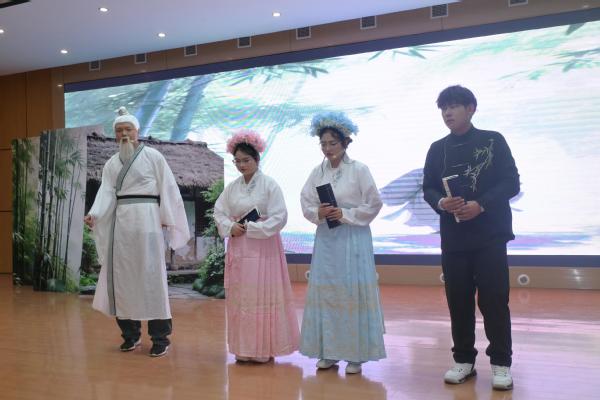 9支团体队伍以创意编排、多声部合诵等形式,赋予杜甫诗歌新的艺术生命力。其中,大数据学院代表队通过情景演绎的方式,再现了《新安吏》的悲怆场景;各学院团队有的则以书法+演绎的形式、抑或者穿越等形式,完美诠释了杜甫诗歌的深远意境,配合学生铿锵诵读,将比赛推向高潮。